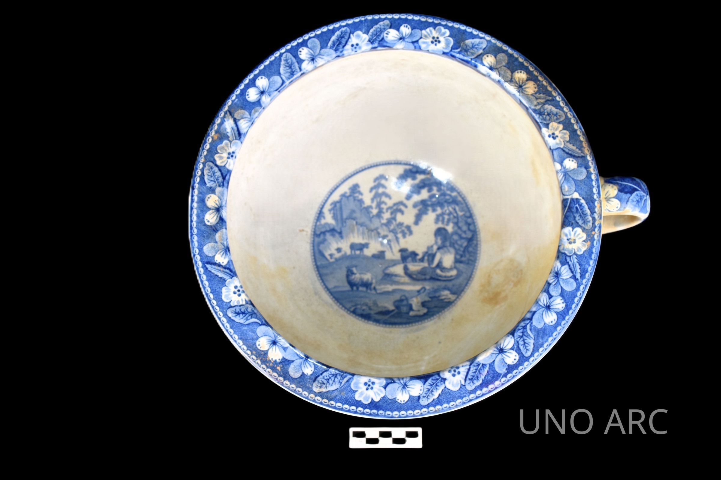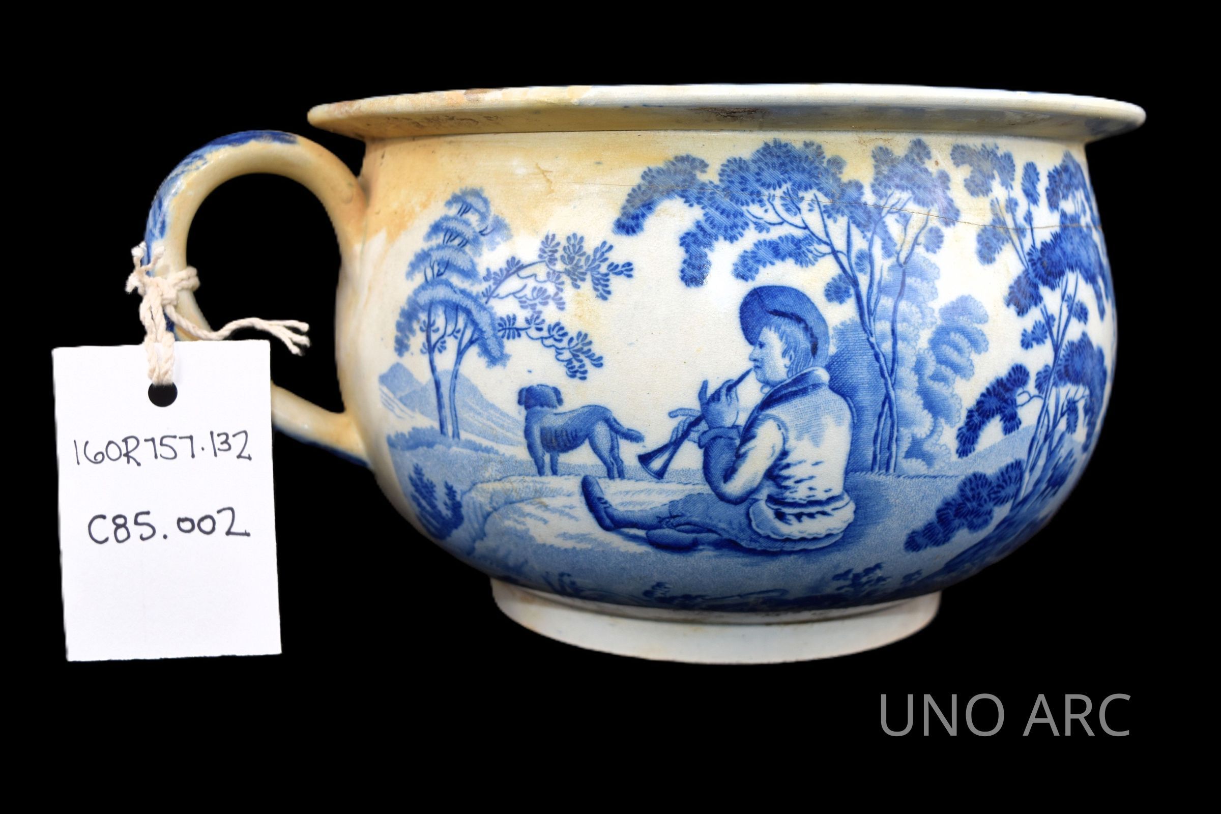 Blue transfer-print pearlware chamber potCollection