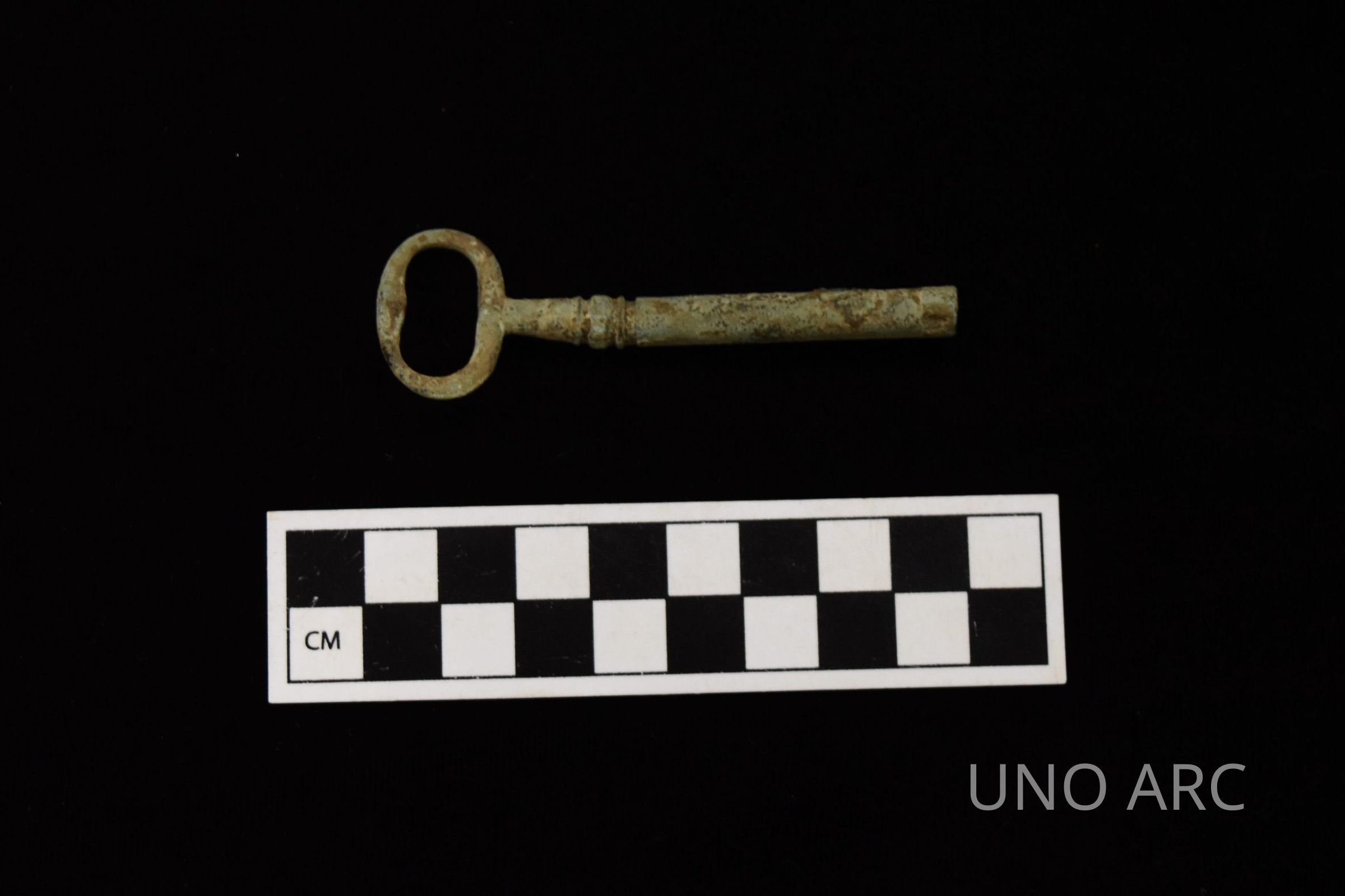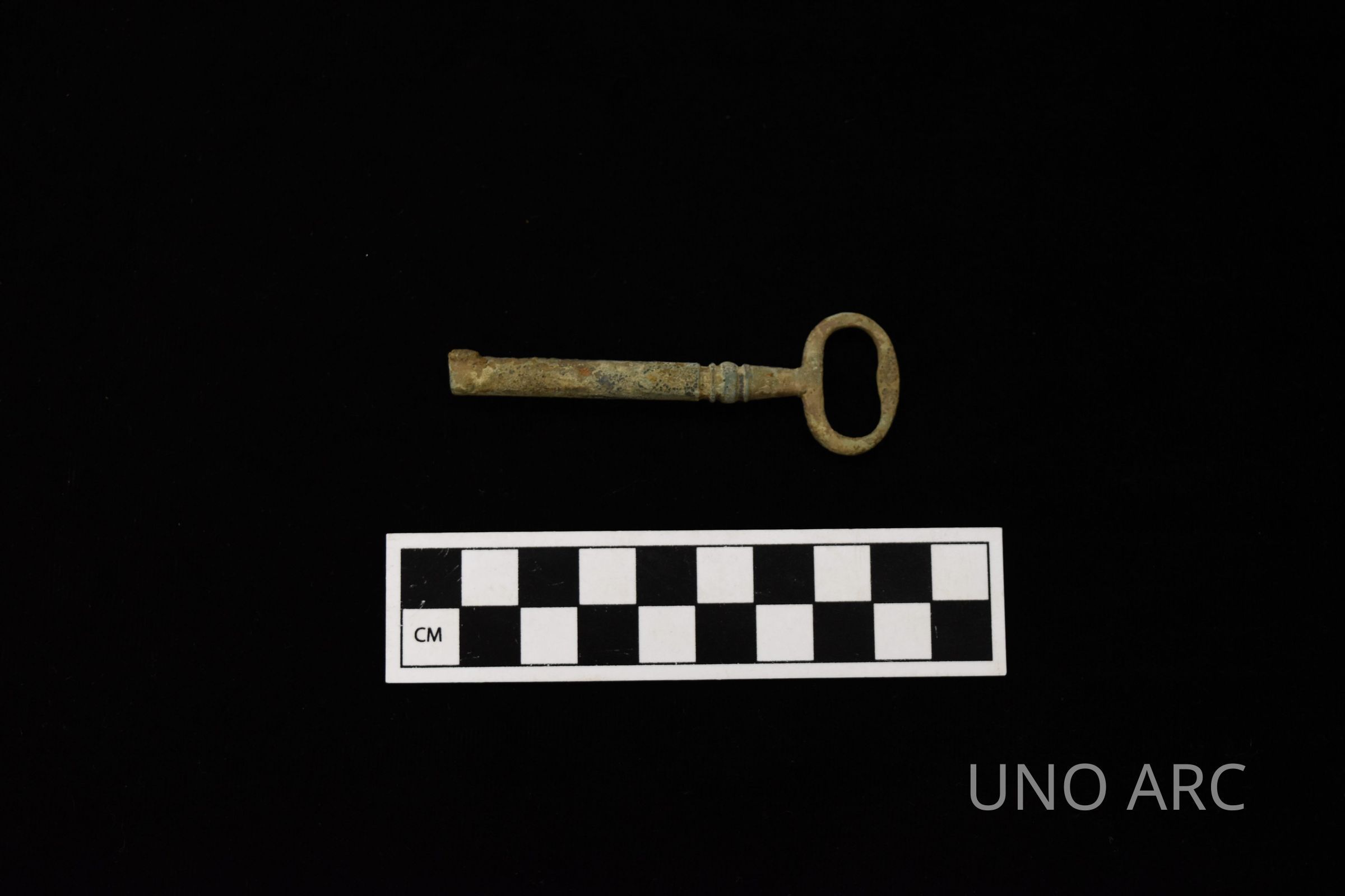 Cuprous key with Head, Barrel shaft with decoration, and deteriorated BitContext
