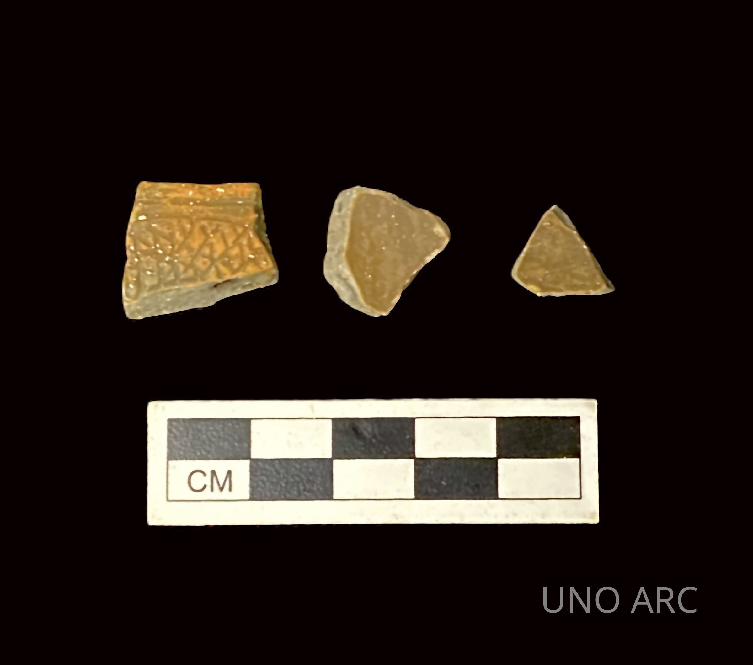 Fragments of hand-built pottery with decorative cross hatchingContext