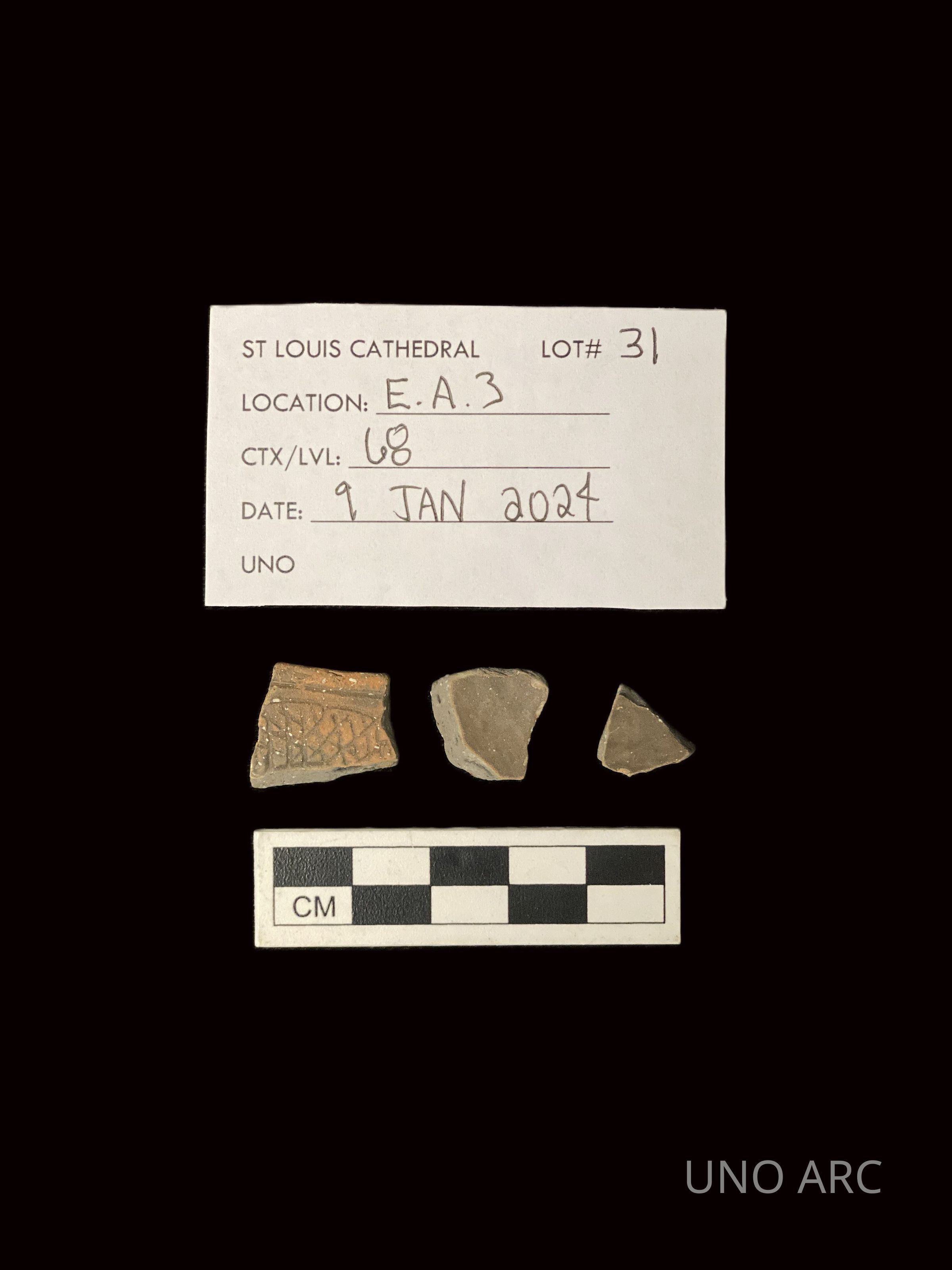 St. Louis Cathedral Excavation, Lot 31, Location: EA3, CTX/LVL: 68, 9 JAN 2024Collection