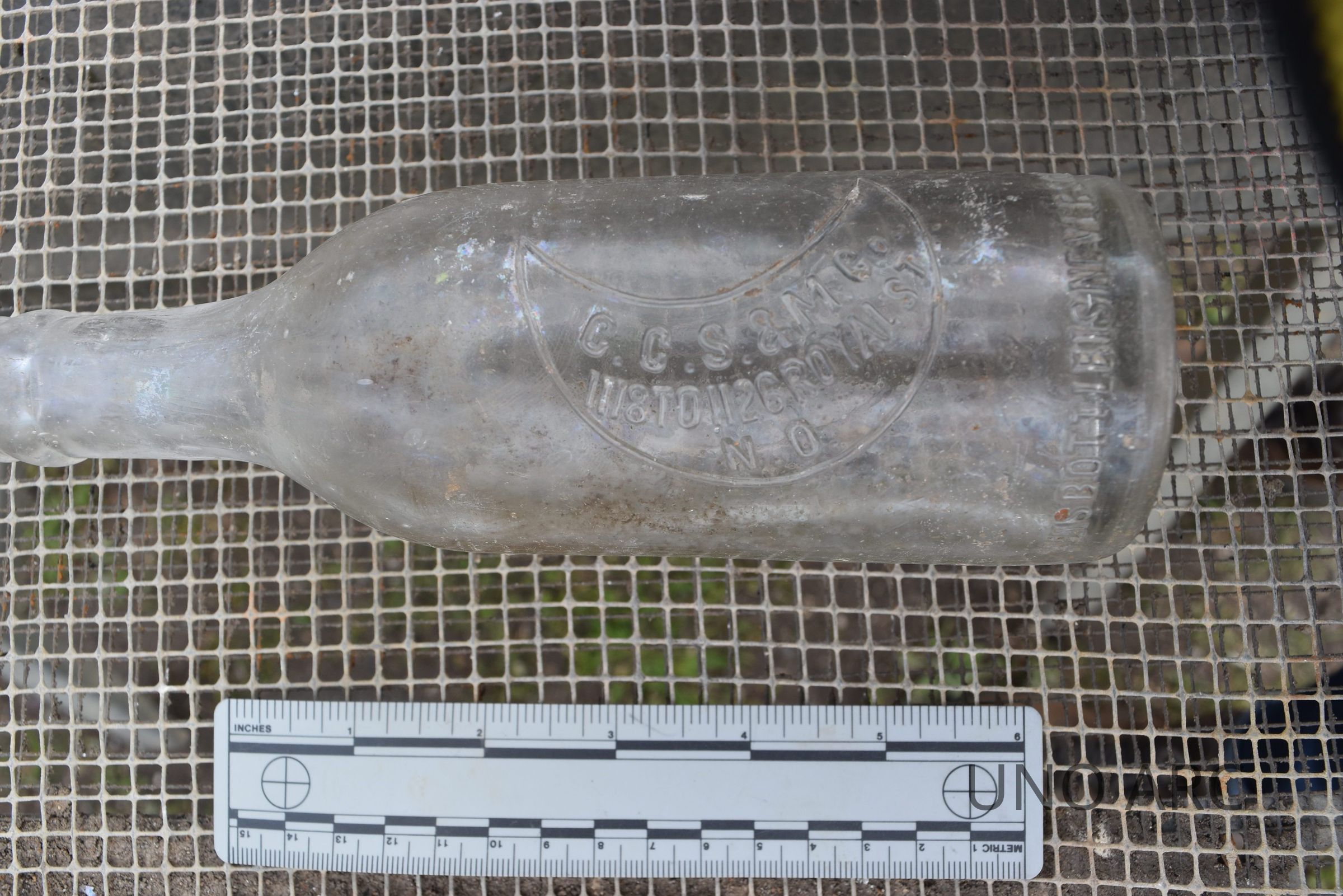 Soda water bottle embossed "C. C. S. & M. Co./1118 to 1126 ROYAL STREET/ N.O./ THIS BOTTLE IS NEVER SOLD" in crescentContext