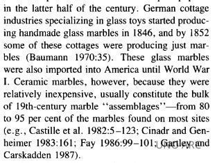 One of the biggest toy manufacturers in the 19th century, Germany led the world in producing and distributing children's toy until the advent of World War I. This attribution is supported by the fact that one of the most common terms used to describe marbles in Southern Louisiana at this time, "Canique", is Germanic in origin.Other Names