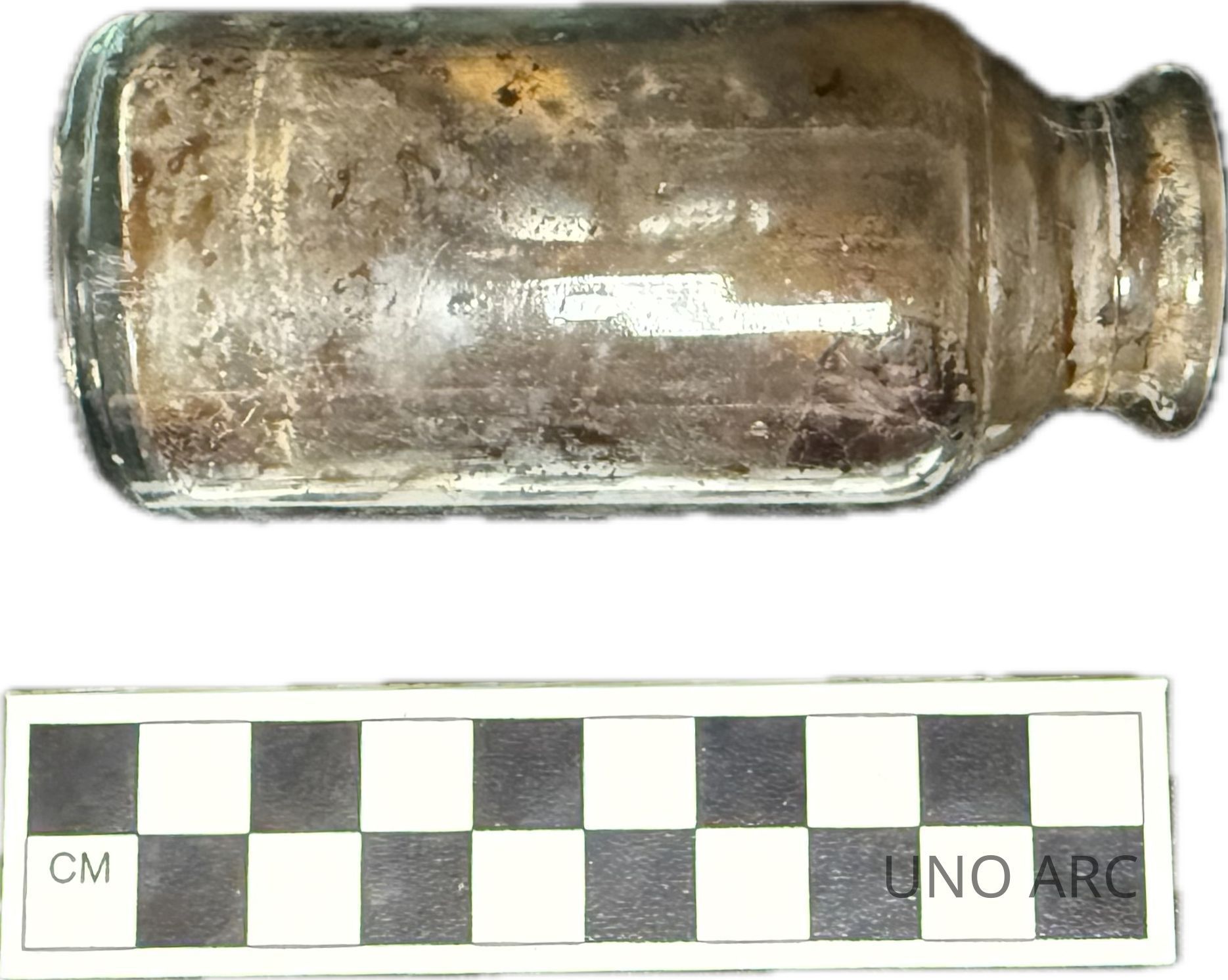 Colorless Small Corked Bottle; Circular Straight Shape; Machine Manufactured; Illinois Glass Company; Maker's Mark- Illinois/11; 1915-1929Context