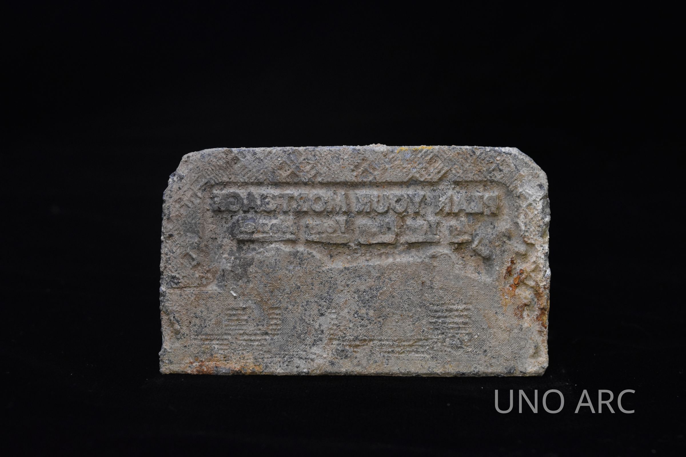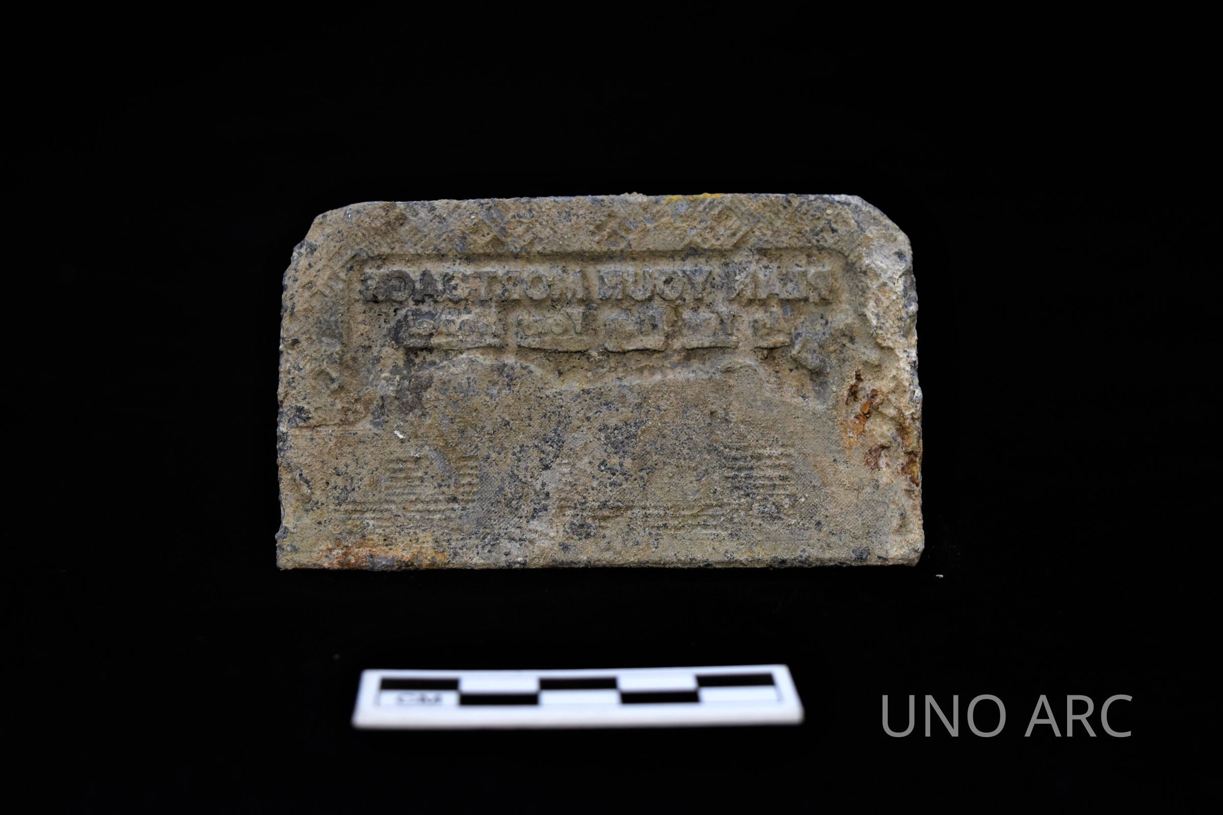 A heavy metal stamp embossed with the words "PLAN YOUR MORTGAGE/WHILE YOU PLAN YOUR HOME".Created By