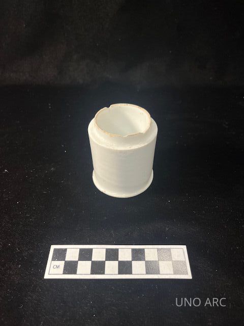 The use of cosmetics and skin creams among the upper class is a practice which dates back thousands of years, especially among women. The (we can assume) woman who owned this pot would more than likely have been of significant financial means, as the minor cosmetic damages to the vessel were enough to warrant it being discarded and presumably replaced. Porcelain, even plain porcelain like this, was and continues to be expensive to produce, and therefore is considered a luxury good. That the original owner of this pot saw fit to throw it away when it remains in such excellent condition a century after being discarded speaks volumes to how goods would have been valued by some of the wealthier denizens of the house.Collection