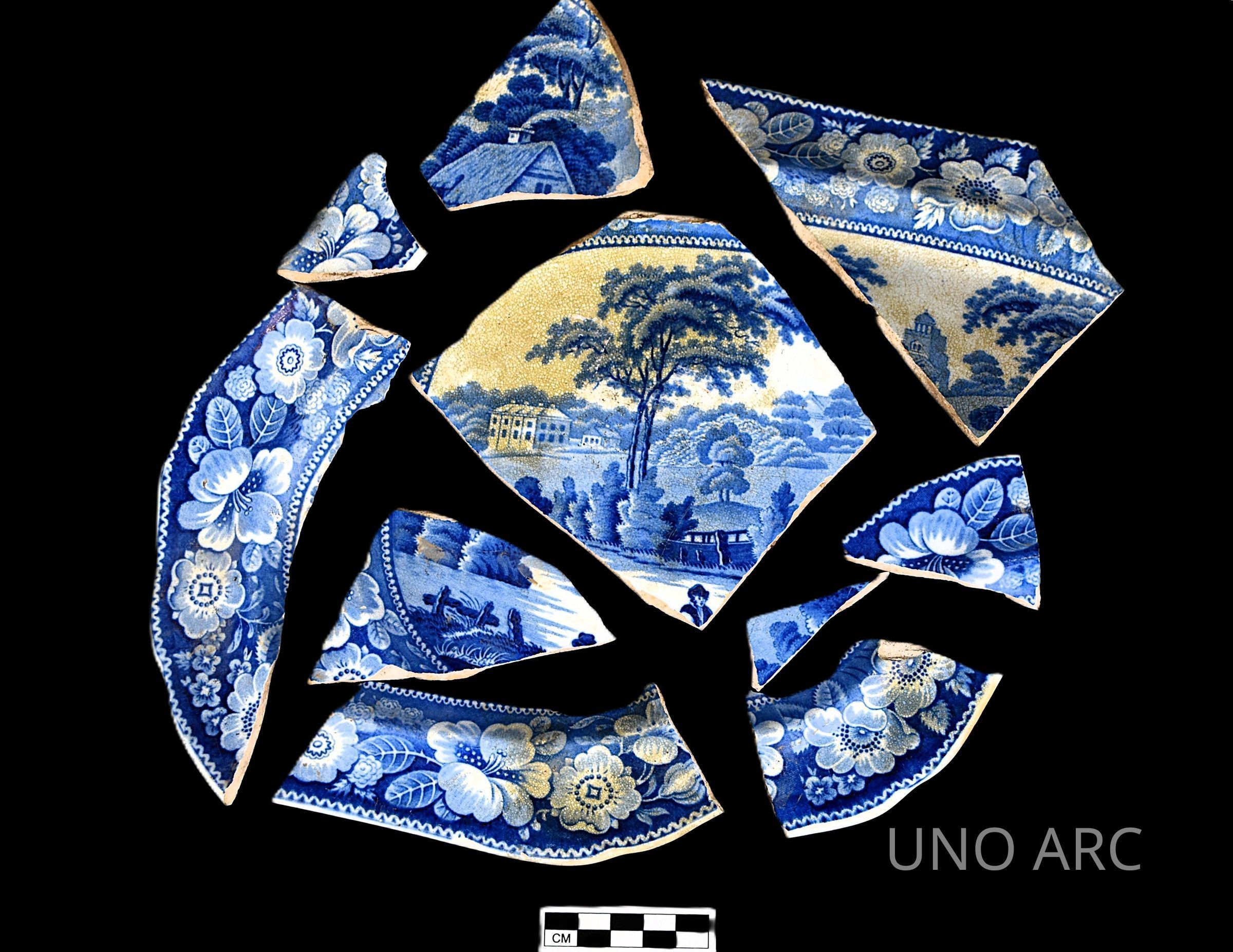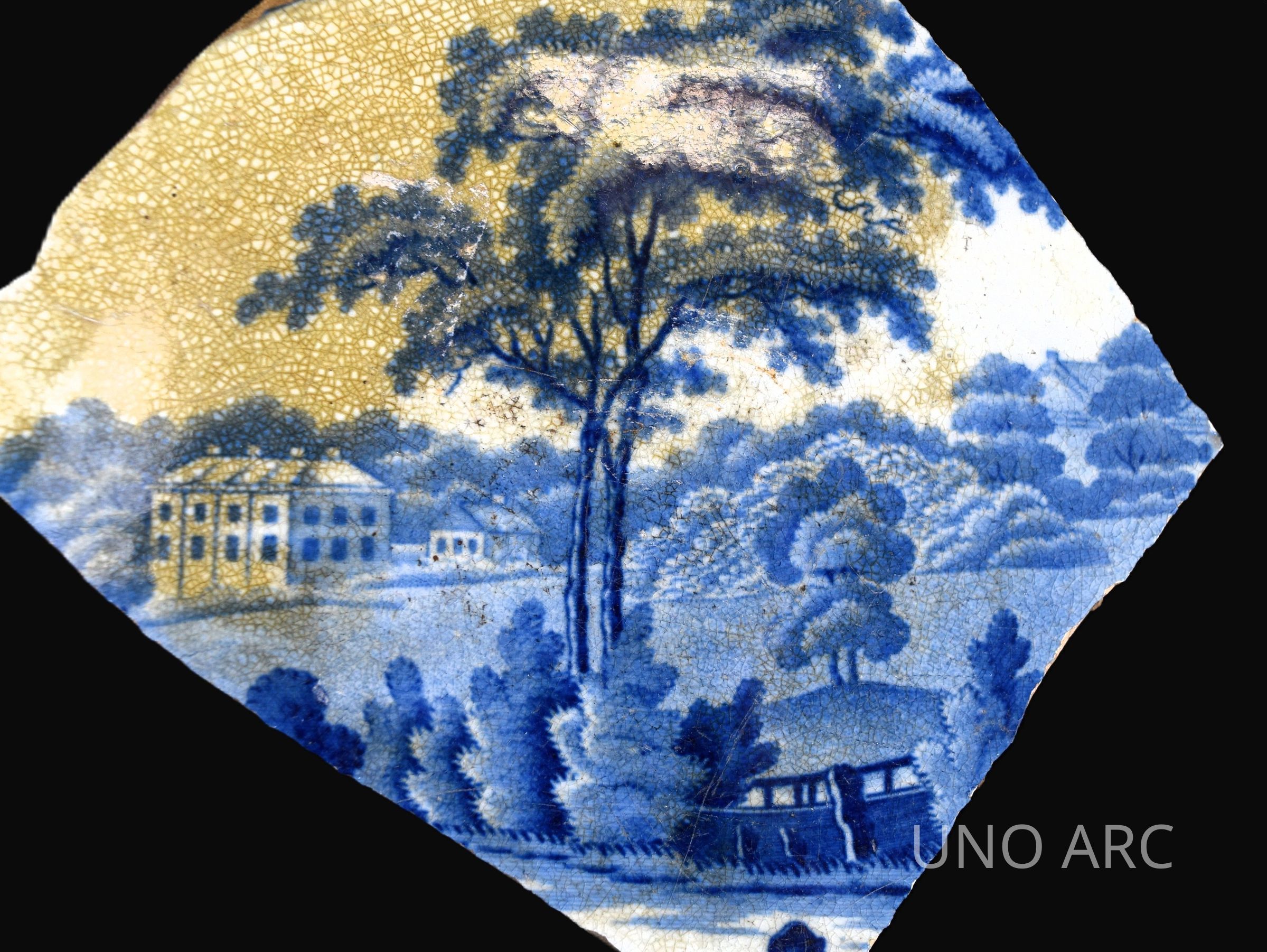 Blue transfer-print pearlware platterCollection