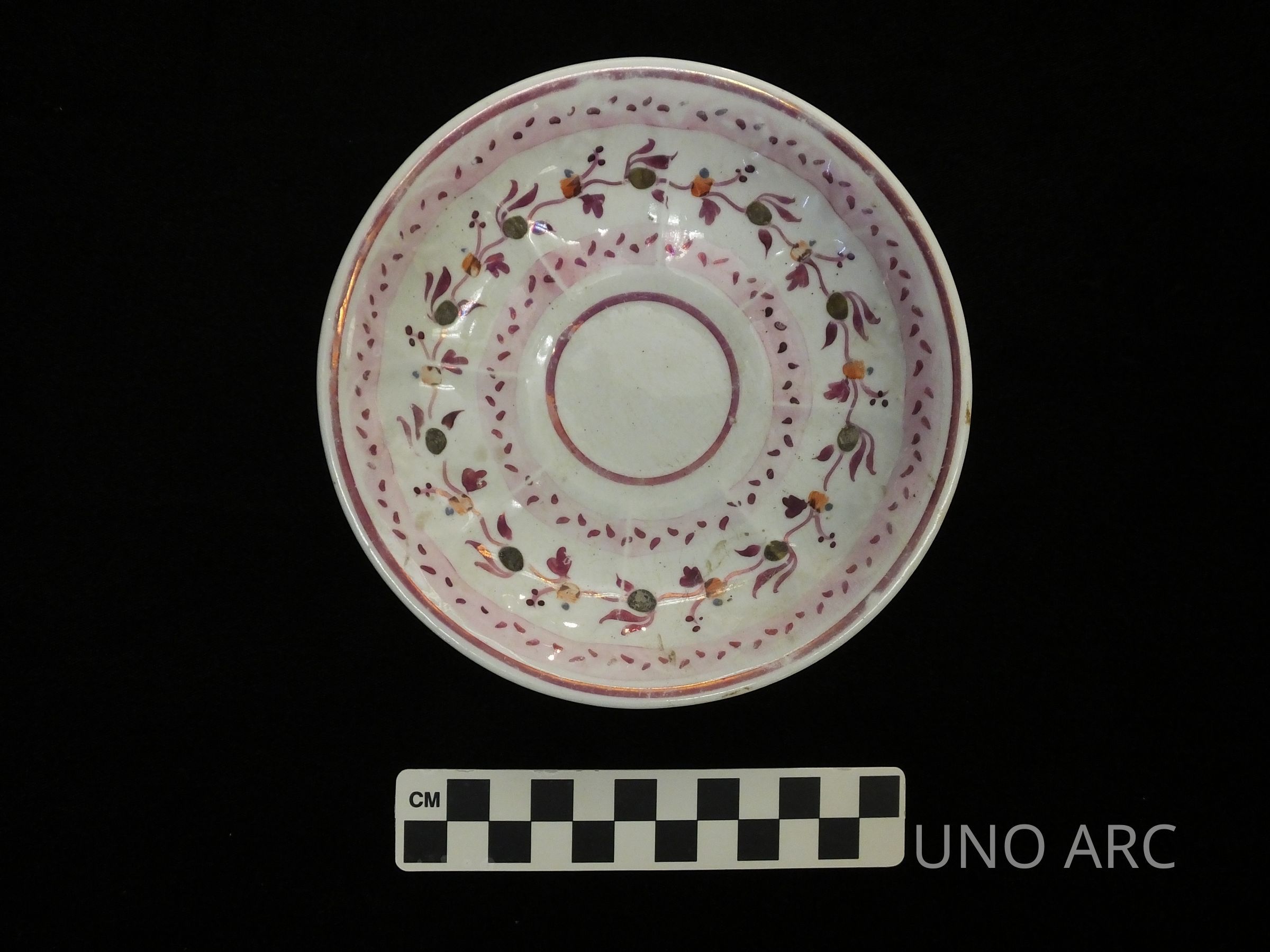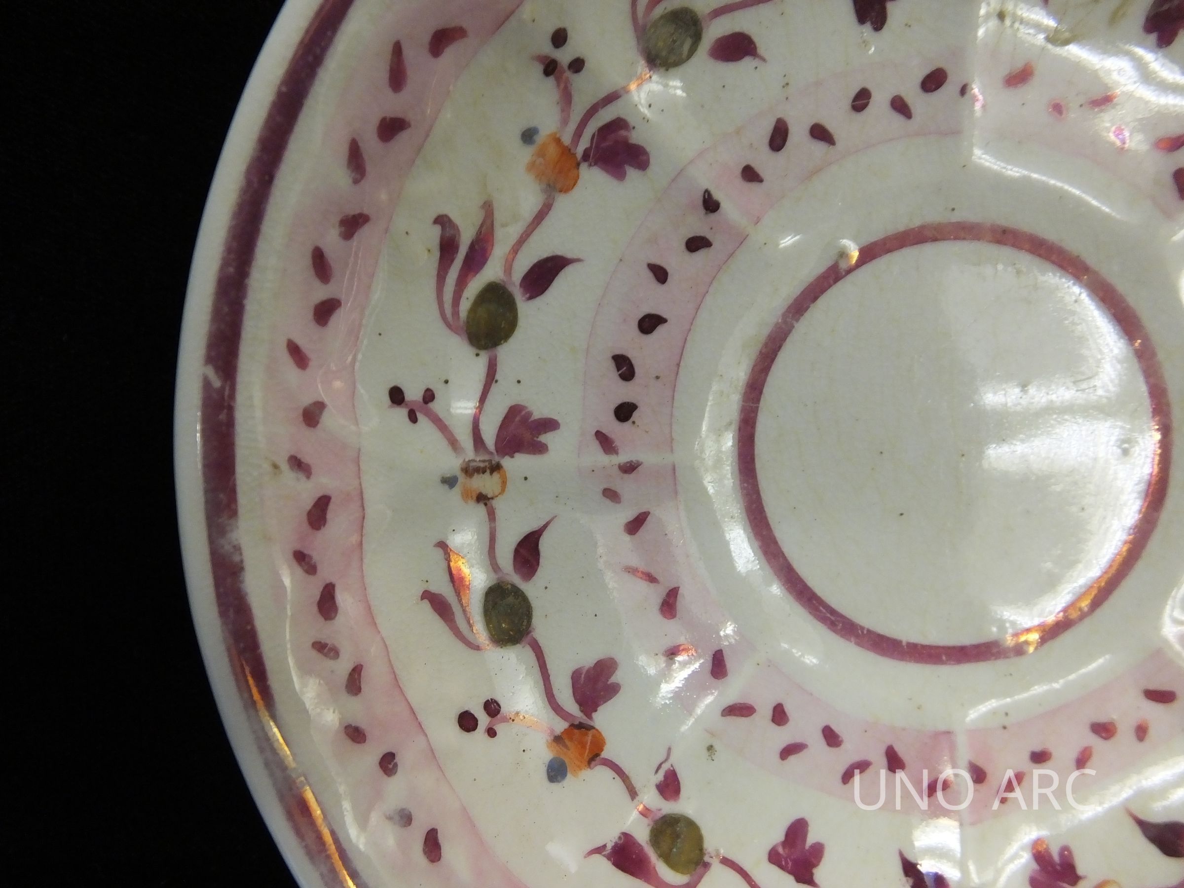 Soft Paste Porcelain Saucer with Pink Luster Decoration