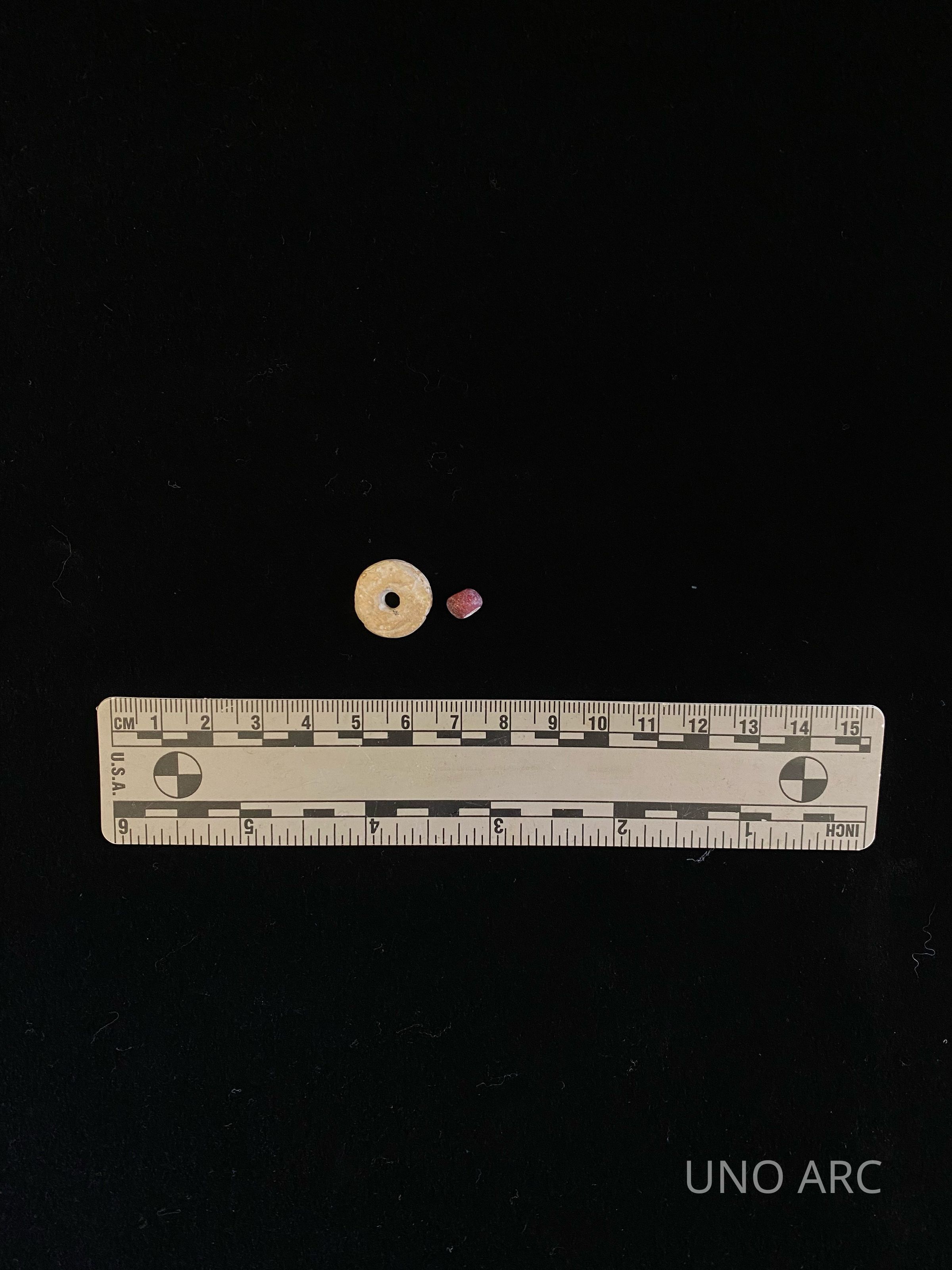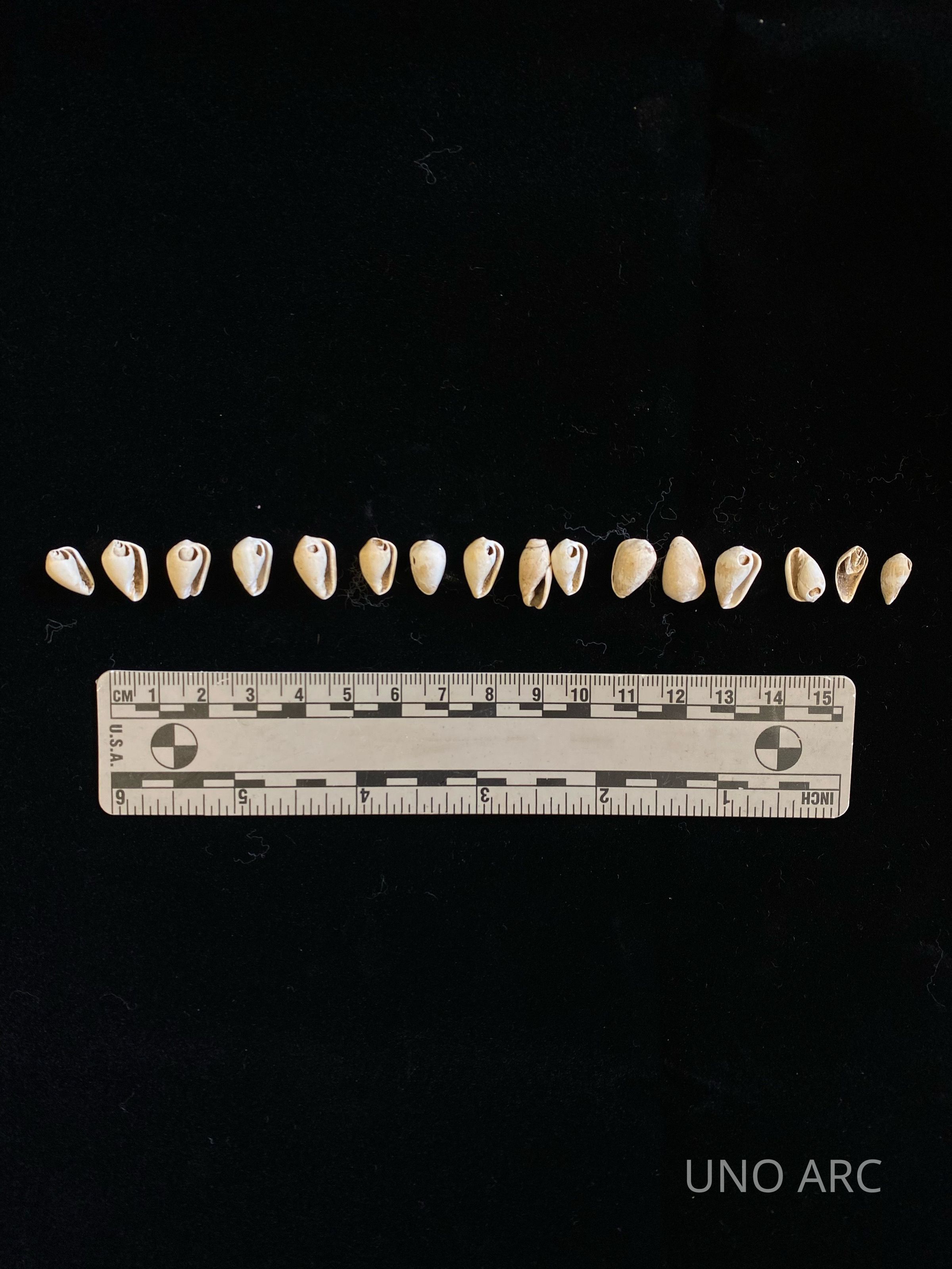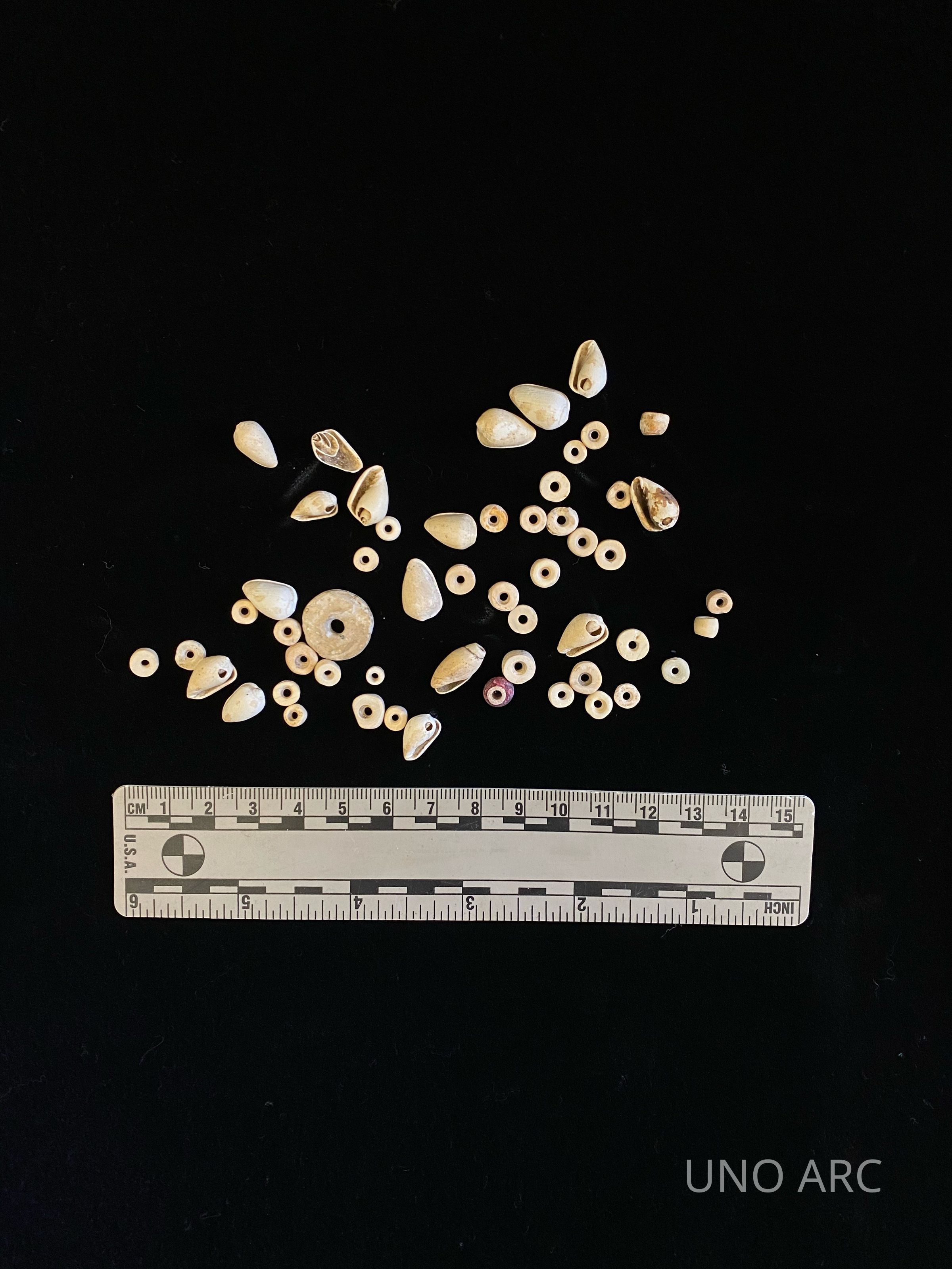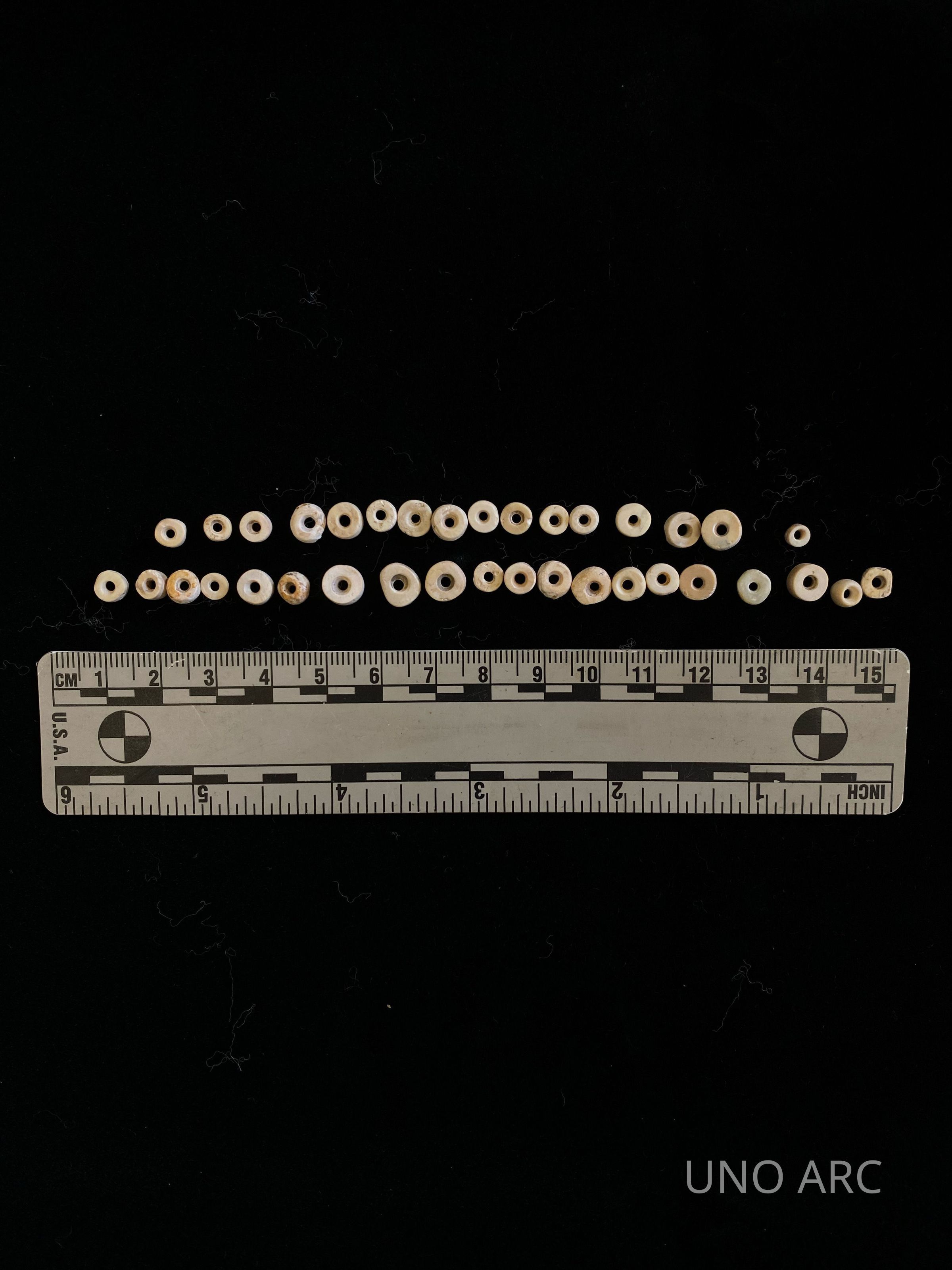 Shell beads, trade from Gulf. Date 1000 AD. Near Spiro Mounds but not at Spiro; CaddoCreated By