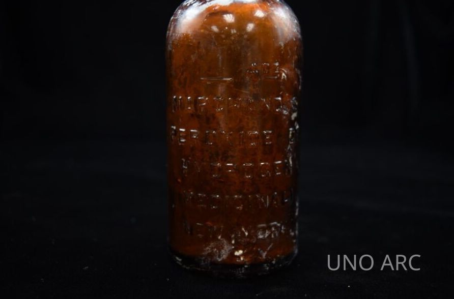 Marchand's Embossed Glass Hydrogen Peroxide Bottle
