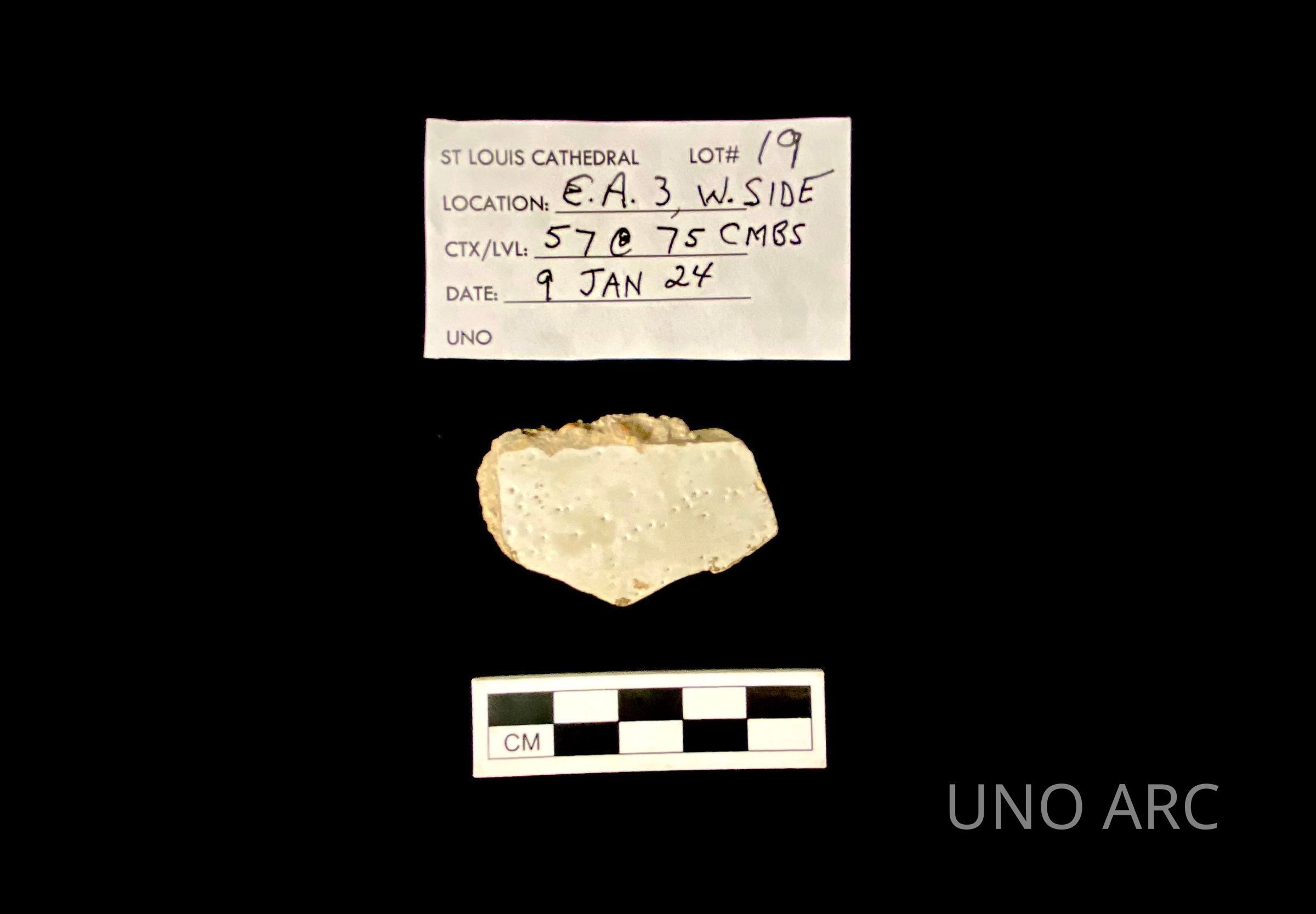 St. Louis Cathedral Excavation, Lot 19, Location: EA3 WEST SIDE, CTX/LVL:57 @ 75 CMBS, 9 JAN 2024Collection