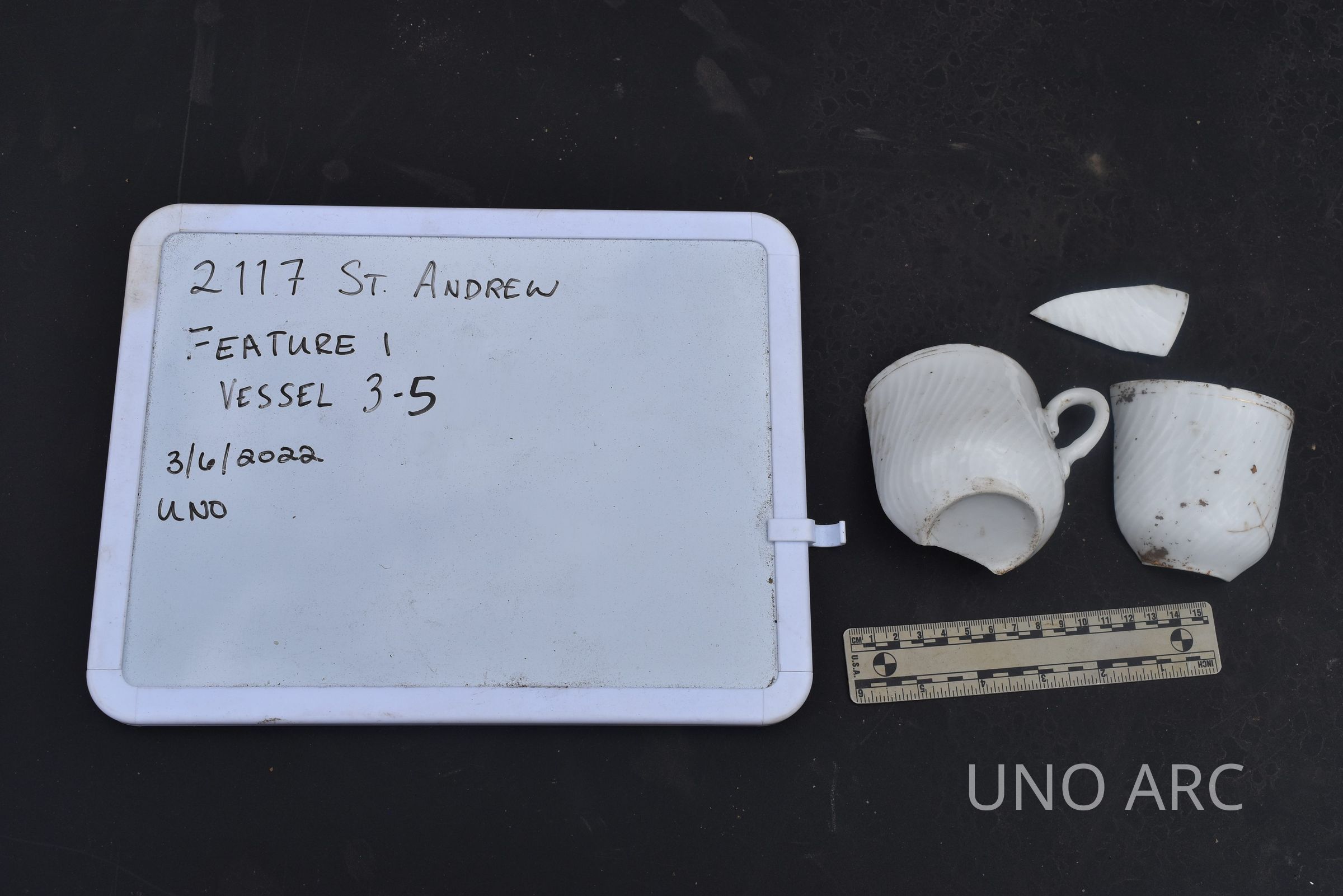 Porcelain cup with molded swirls and gilt rimContext