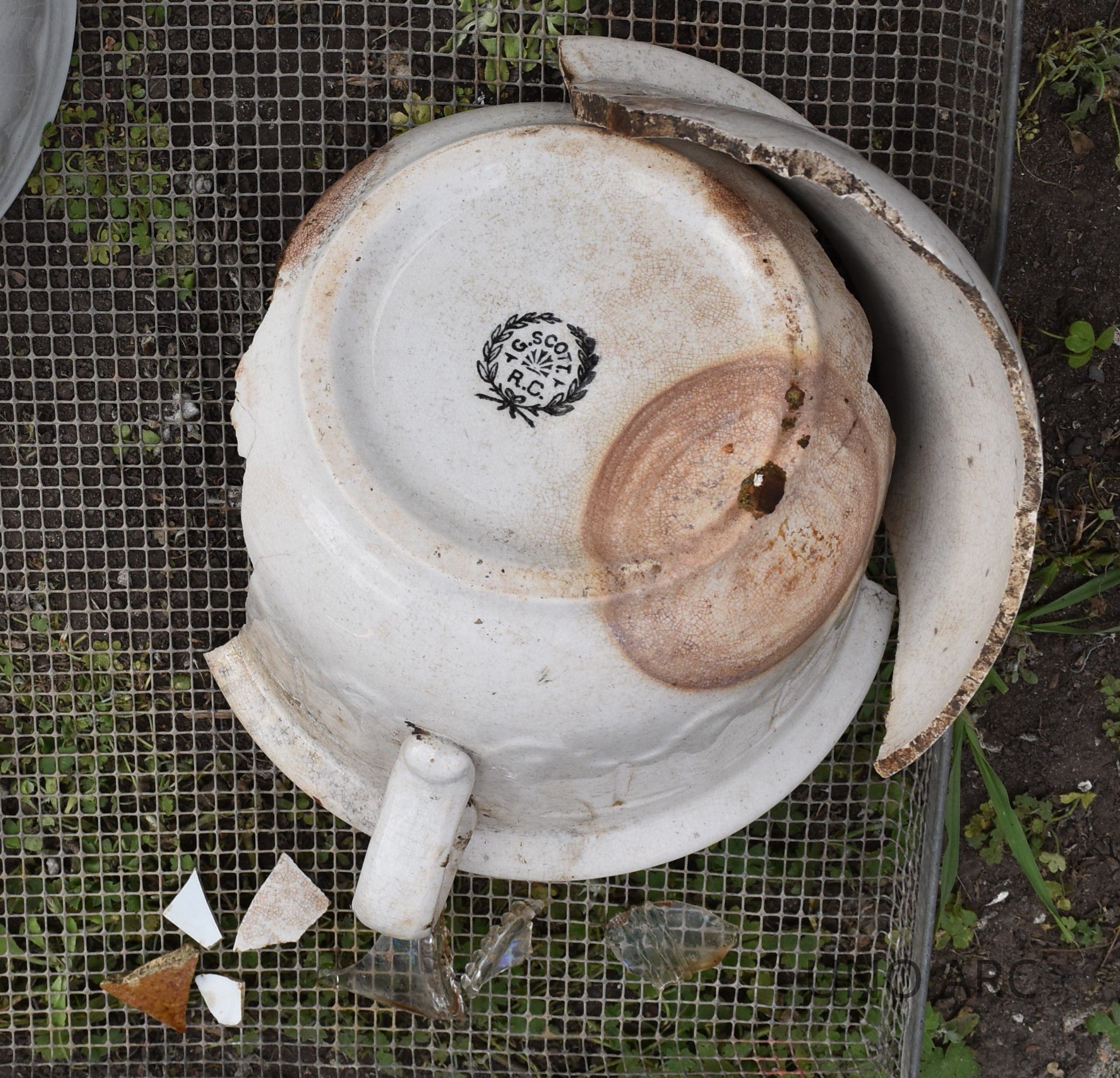 Ironstone chamber pot with "G. SCOTT/ R.C." markContext
