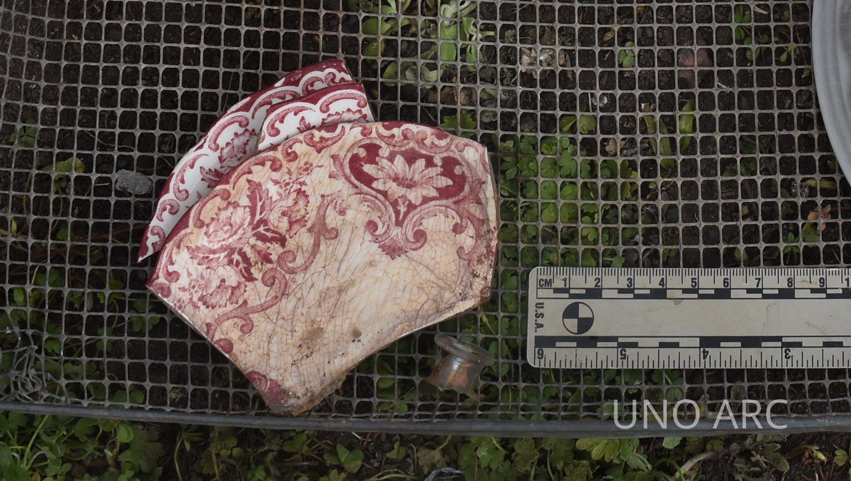 Red transfer printed whiteware plateContext