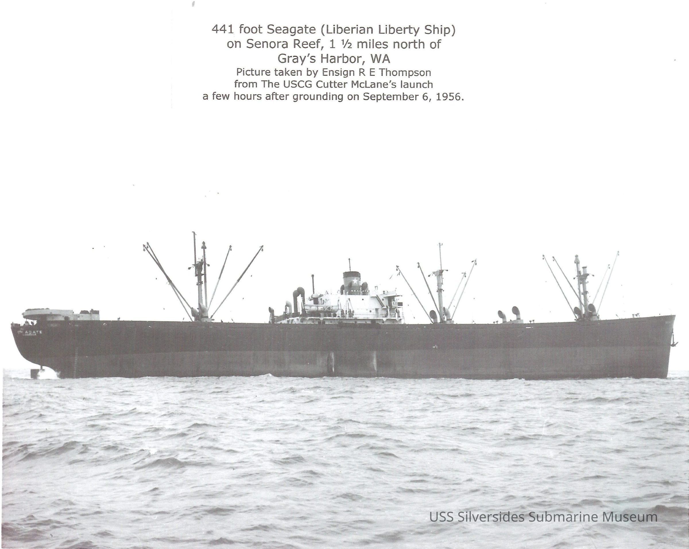 Photograph of Liberian Liberty Ship Seagate. Photograph was taken from the USCGC McLane