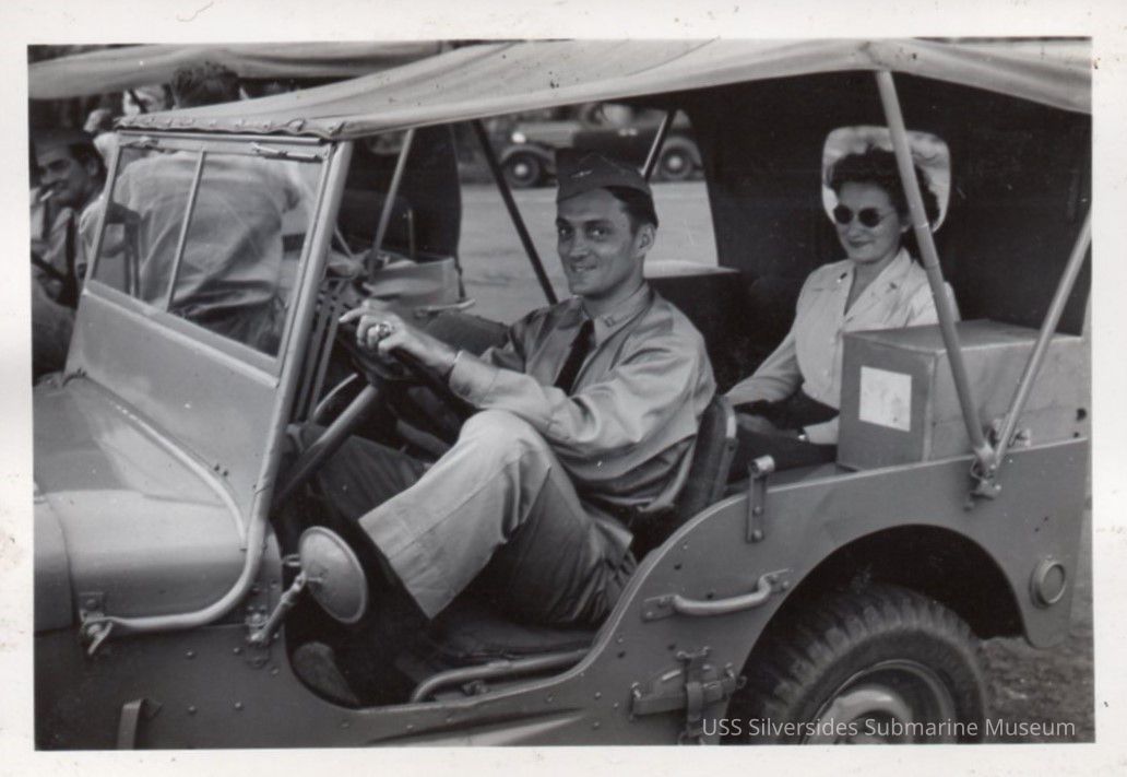 Photo of Lt. Worthington in the driver's seat of a Jeep with Lt. Yardley, A.N.C. riding in the back.Acquisition