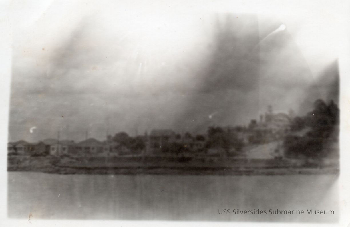 Black and white photo of a shoreline. Writing on reverse reads: Along the Brisbane River.Acquisition