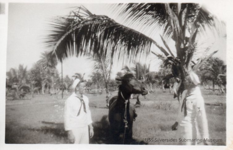 Black and white photo of Robert Vehmeier and Stanley Jacobson with a small horse/mule.Acquisition