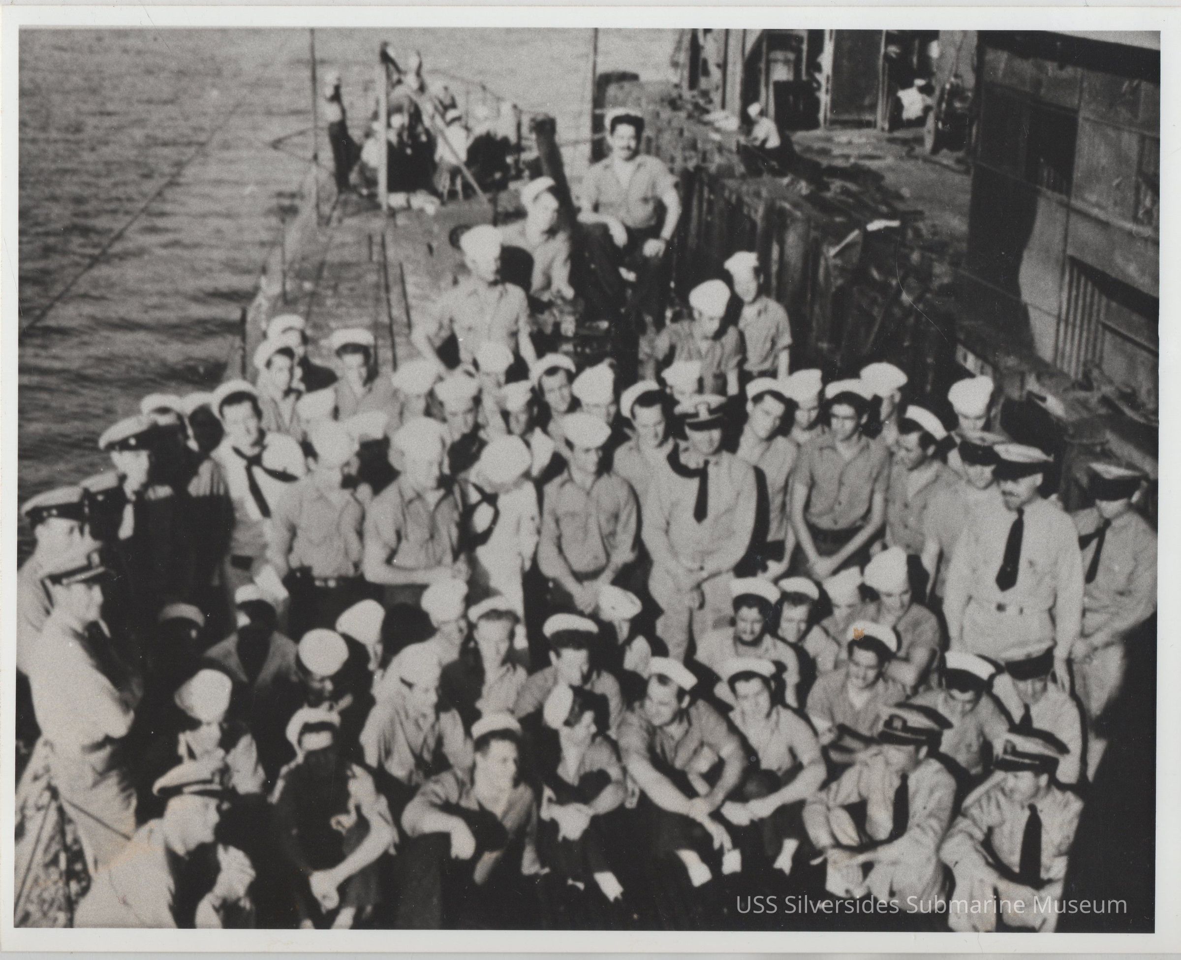 8" x 10" black and white photograph, copy of original photograph label reads: "Crew USS Silversides (SS26) at end of 2nd Patrol 9 September 1942" 5.5" x 8.5" printed copy of photograph, in pen: "Pearl Harbor Sept '42 - crew of patrol #2"Acquisition