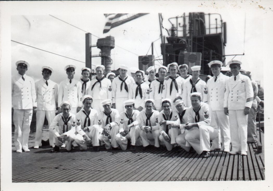 Photo of 5 officers and 12 sailors on the deck of the Silversides. This is the same group in 2006.002.071.Acquisition
