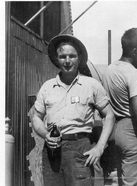 Black and white photograph of James Hall wearing a wide-brimmed hat and a US Navy work uniform.