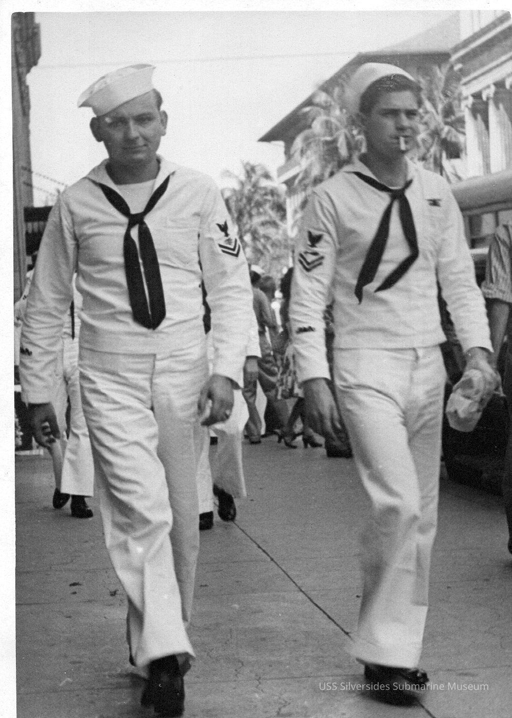 Photo of James Kastner (right) walking with another sailor.