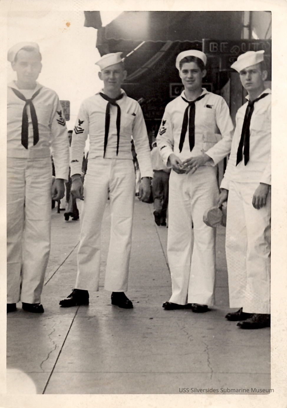 Photo of James Kastner (2nd from right) with 3 other sailors.