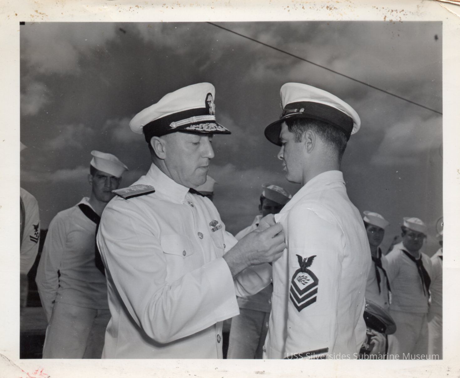 Photo of CRM AA Albert Stegall receiving an award from Admiral Lockwood.