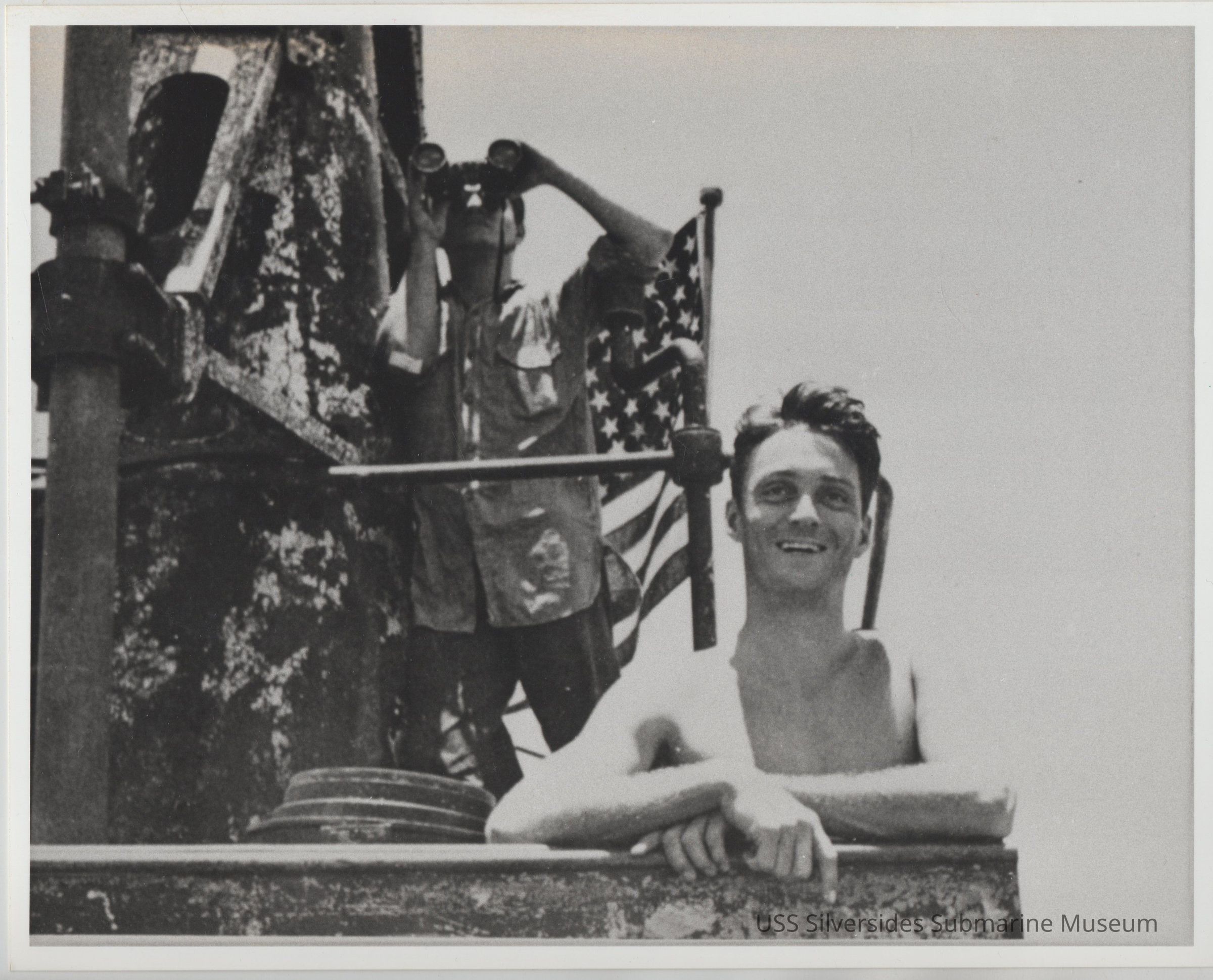8" x 10" black and white photograph, copy of original photograph label reads: "LT. Robert Worthington and Edwin Kerth S2C between 15 July - 25 Nov 1942" 5.5" x 8.5" printed copy of photograph, in pen: "2nd or 3rd Patrol (Lookout) S2c Kerth, Edwin M. July 10, '42-Dec 11 '42 Lt. R.K.R. Worthington (Gunnery Officer) (2nd or 3rd Patrol)"Acquisition