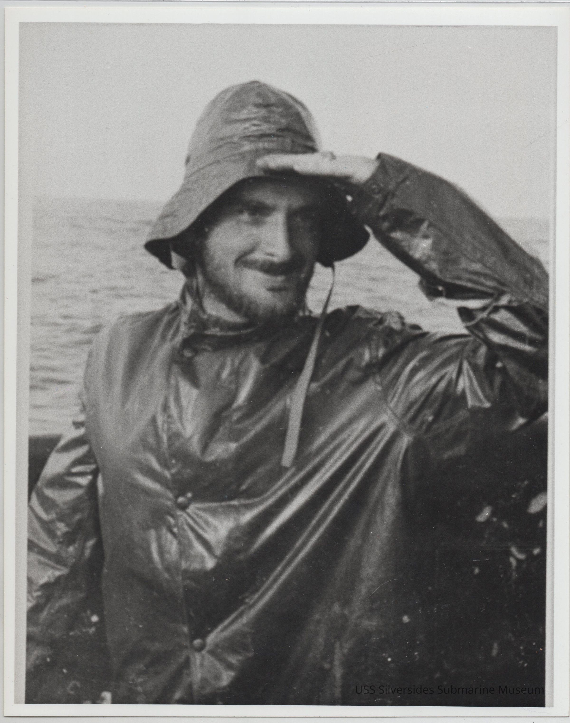 8" x 10" black and white photograph, copy of original photograph label reads: "LT. T.D. Keegan O.O.D. in rain squall Circa 5 Oct 1943 - 8 Nov 1943" 5.5" x 8.5" printed copy of photograph, in pen: "LT T.D. Keegan (7th or 10th patrol) ?"Acquisition