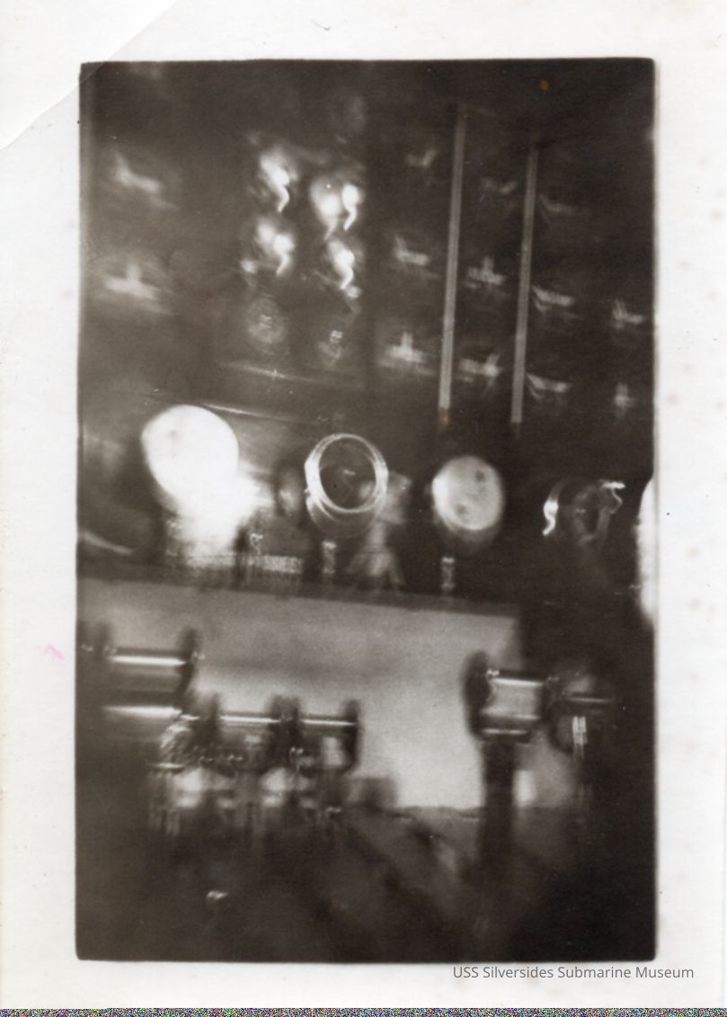 Black and white photo showing the control panels in the Silversides' maneuvering room.Acquisition