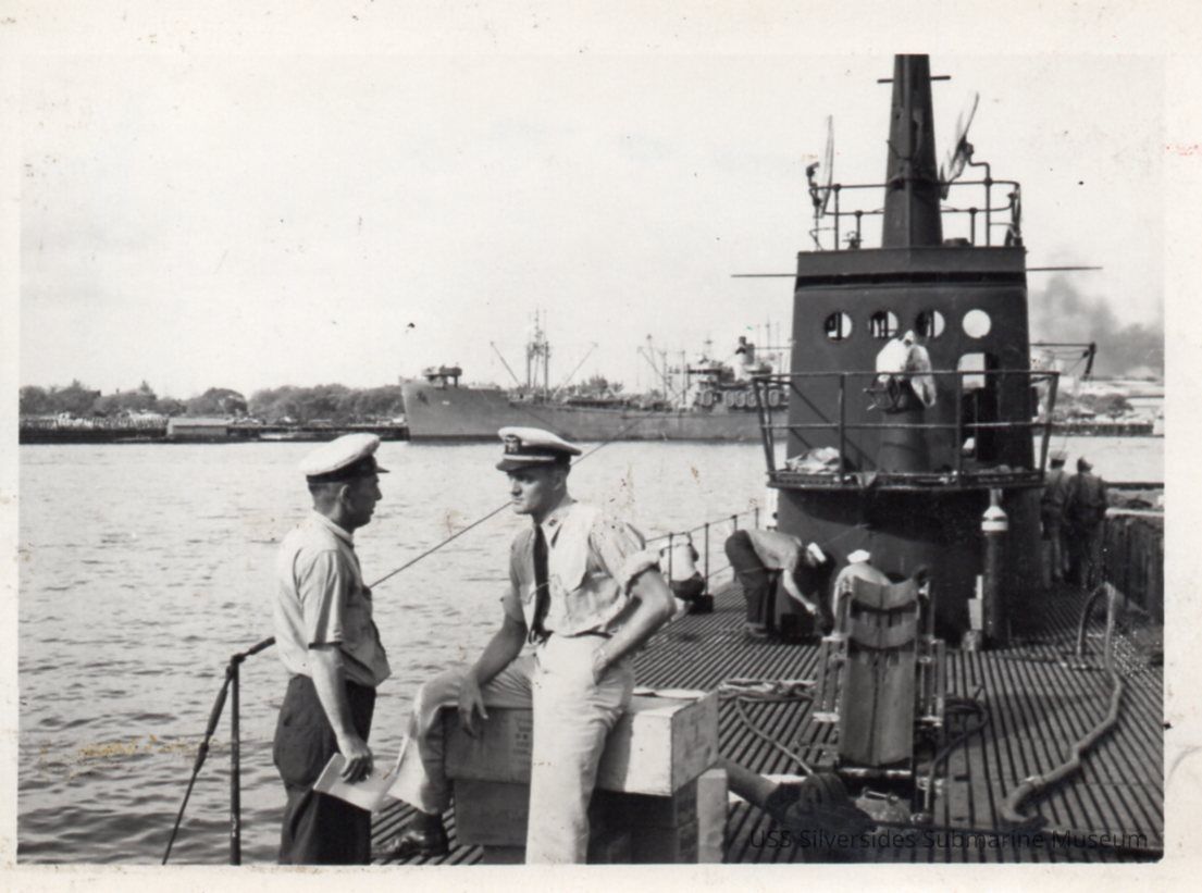 Photo of Lt. Worthington speaking to "Andy" on the deck of the Silversides. "Andy" is CTM-AA/PA Robert Anderson. Handwriting on the revers reads: Swiv & Andy.Acquisition