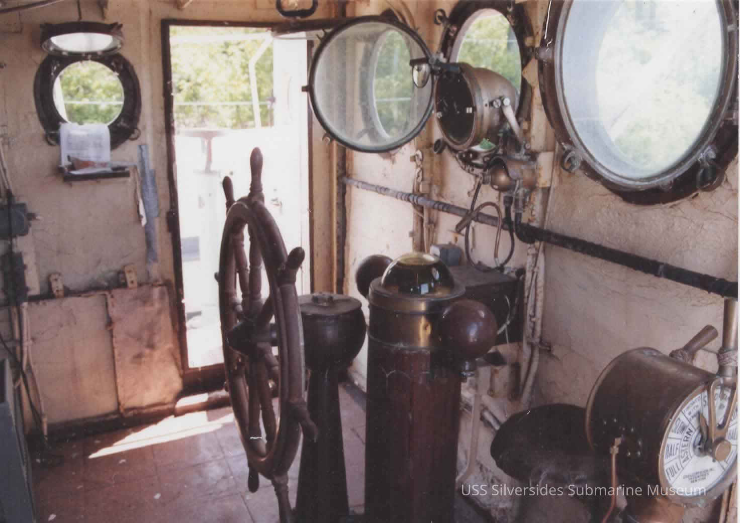 Photo shows the interior of the pilot house of the USCGC McLane W-146. Writing on the reverse reads: Pilot House Detail circa 1993.Acquisition