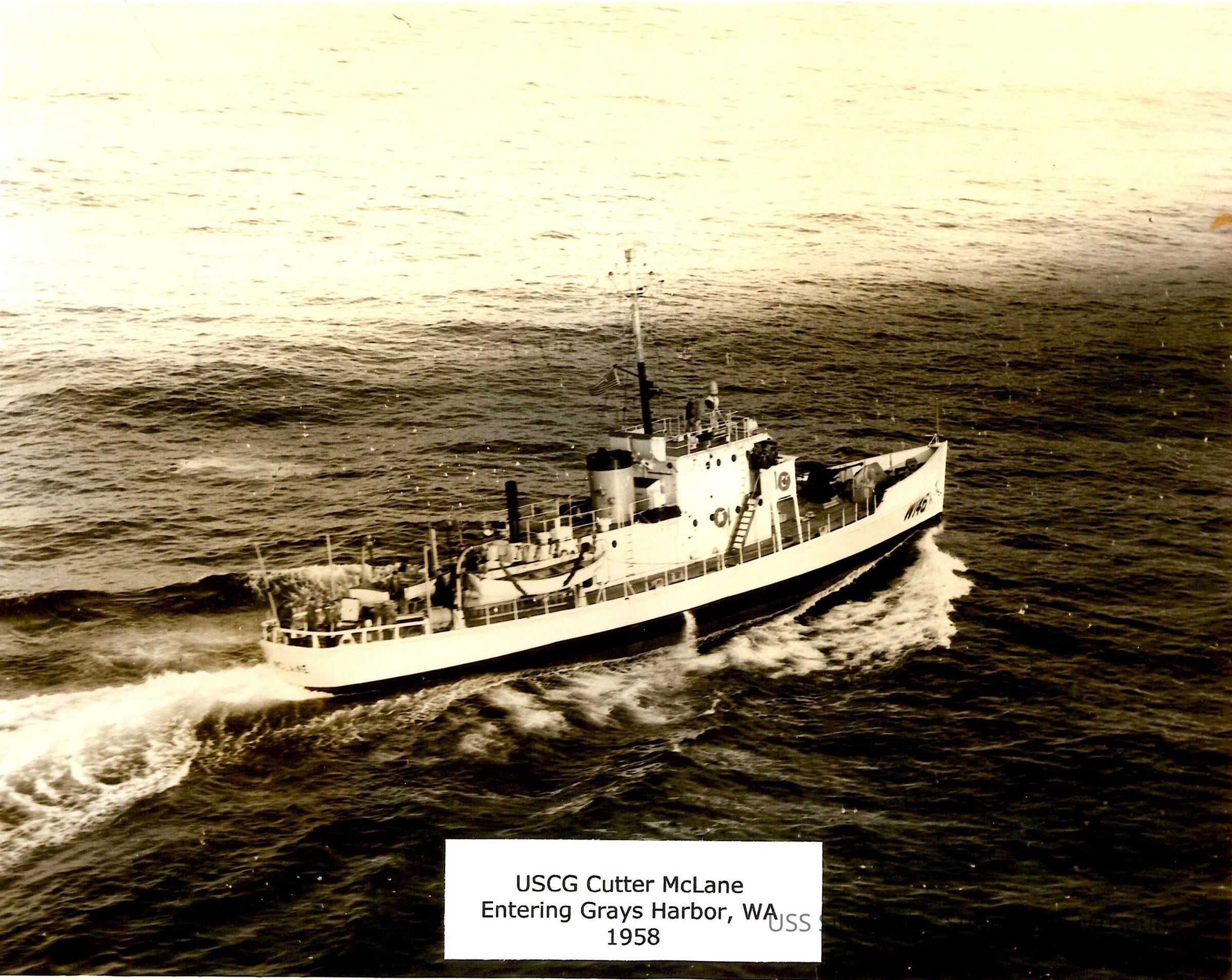 Copy of Photo of McLane in open water. Same photo as 2009.009.003. Bottom reads: "USGC Cutter McLane / Entering Grays Harbor, WA / 1958."Acquisition