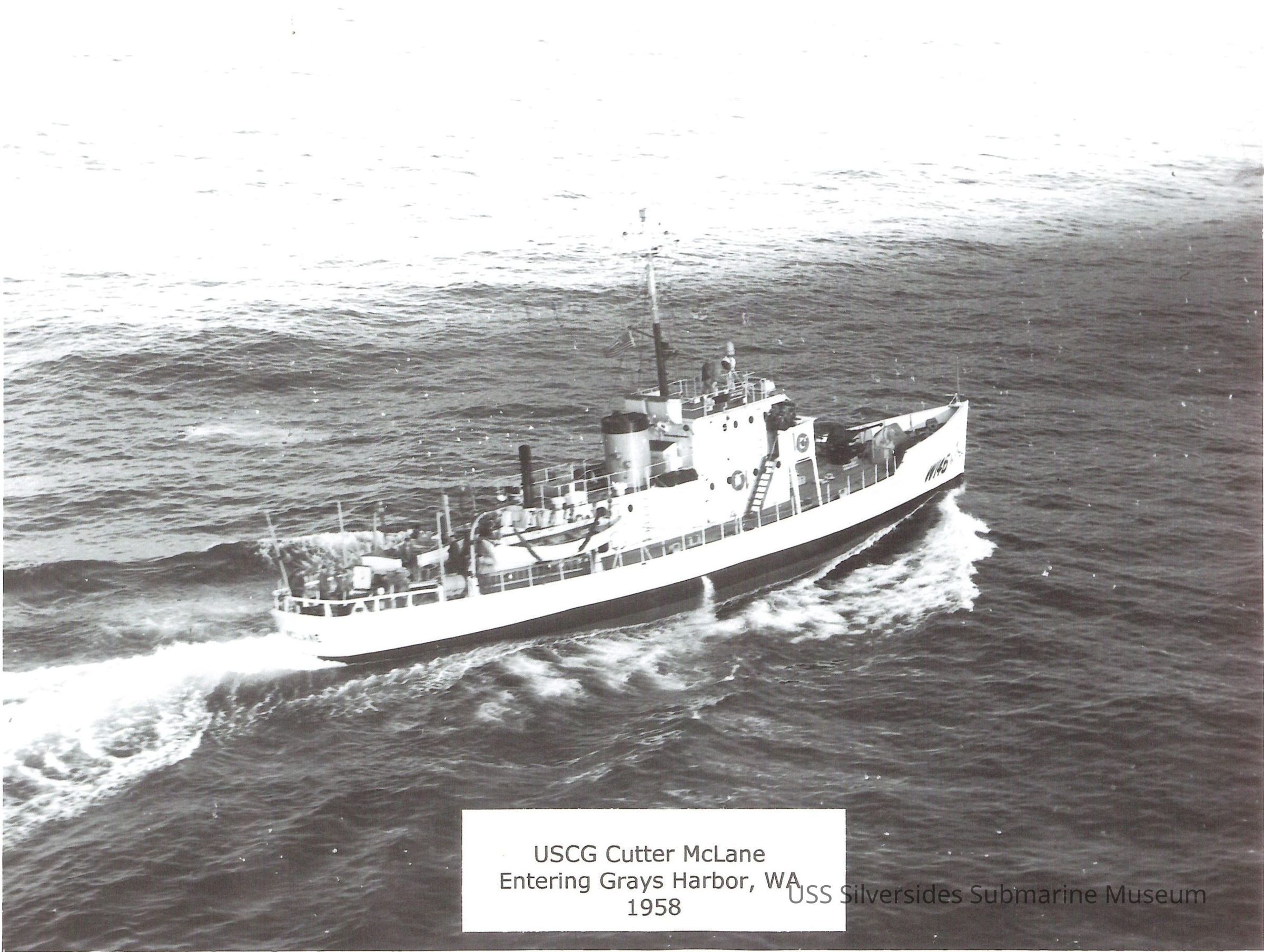 Copy of Photo of McLane in open water. Same photo as 2009.009.003, better quality. Bottom reads: "USGC Cutter McLane / Entering Grays Harbor, WA / 1958"Acquisition
