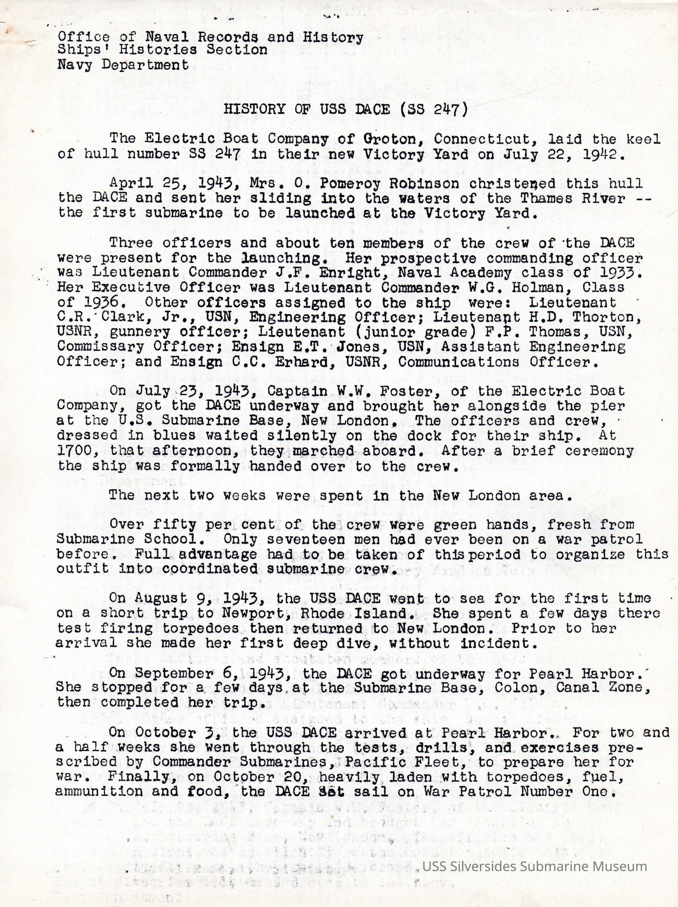 History of the USS Dace SS-247