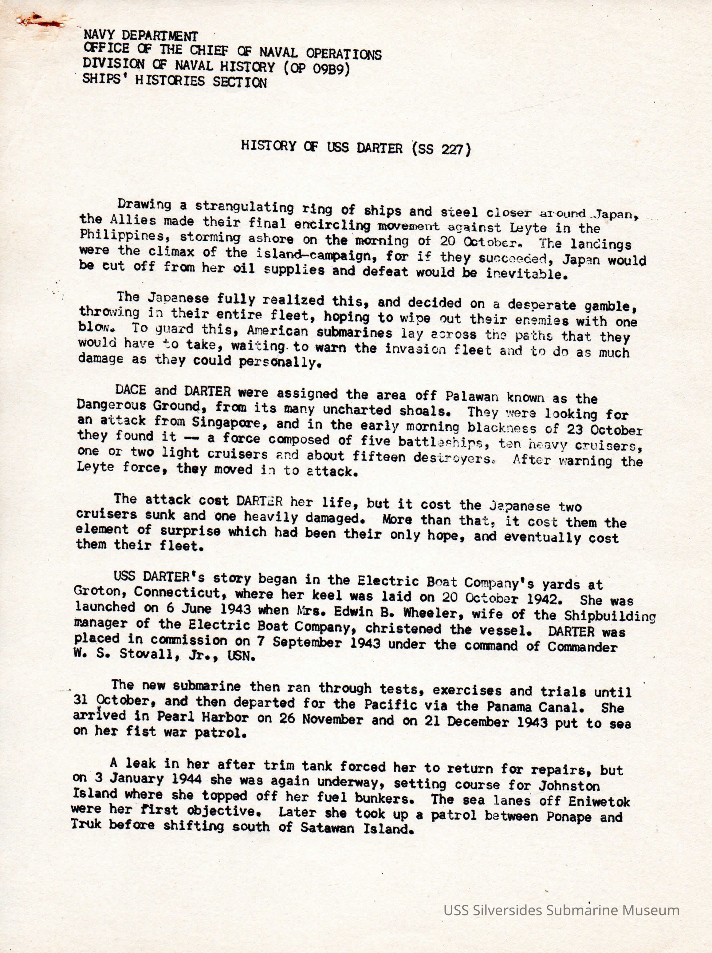 History of the USS Darter SS-227