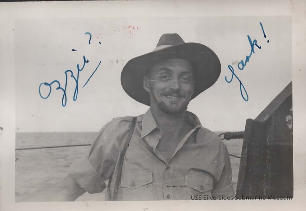 Photo of Lt. jg/Lt. Robert Worthington. The words "Ozzie?" and (?) are handwritten on the photo. The second word is somewhat illegible. Worthington served during patrols 1-8.Acquisition