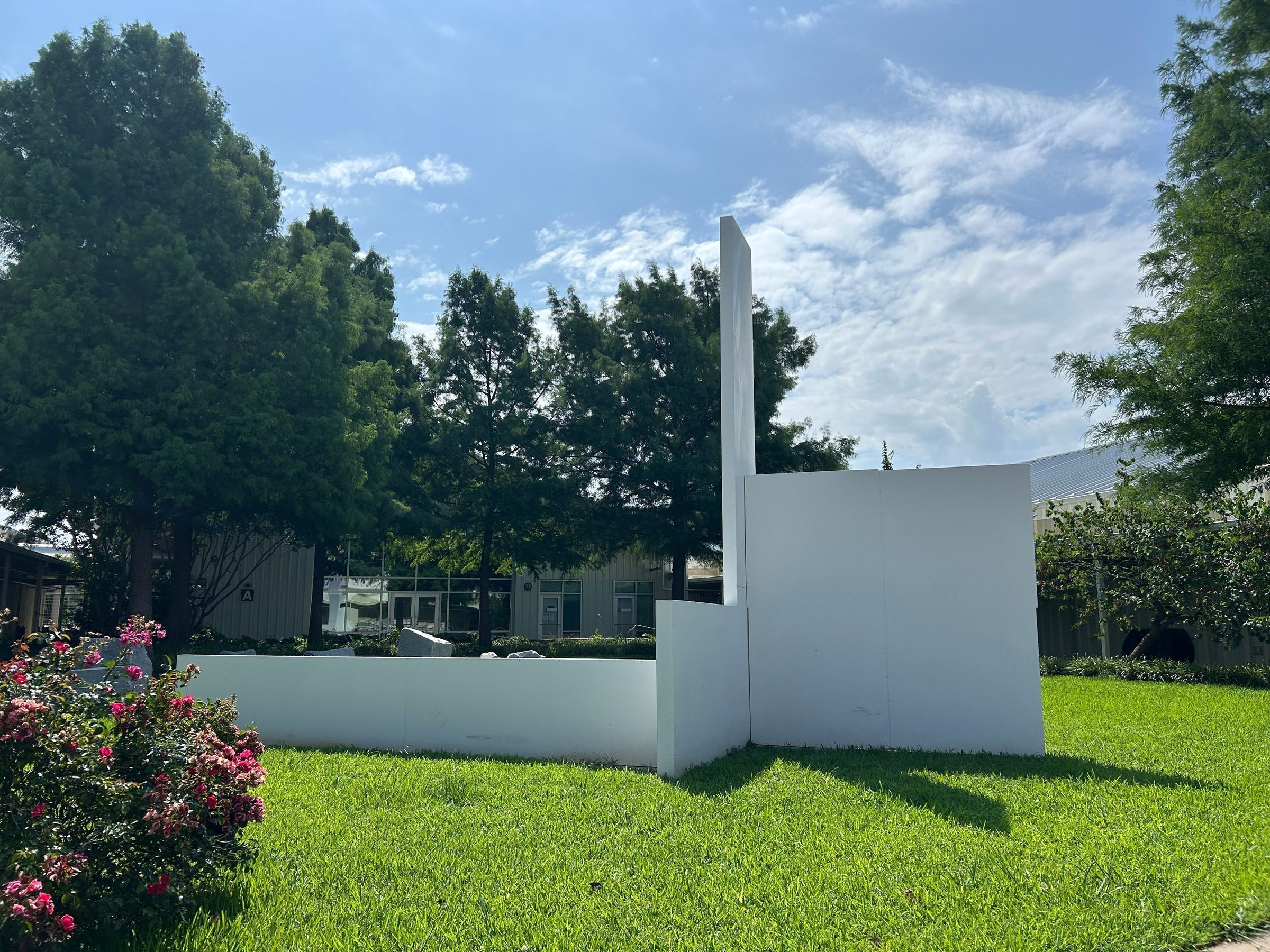 A large white sculpture made up of smaller rectangular panels.Made/Created