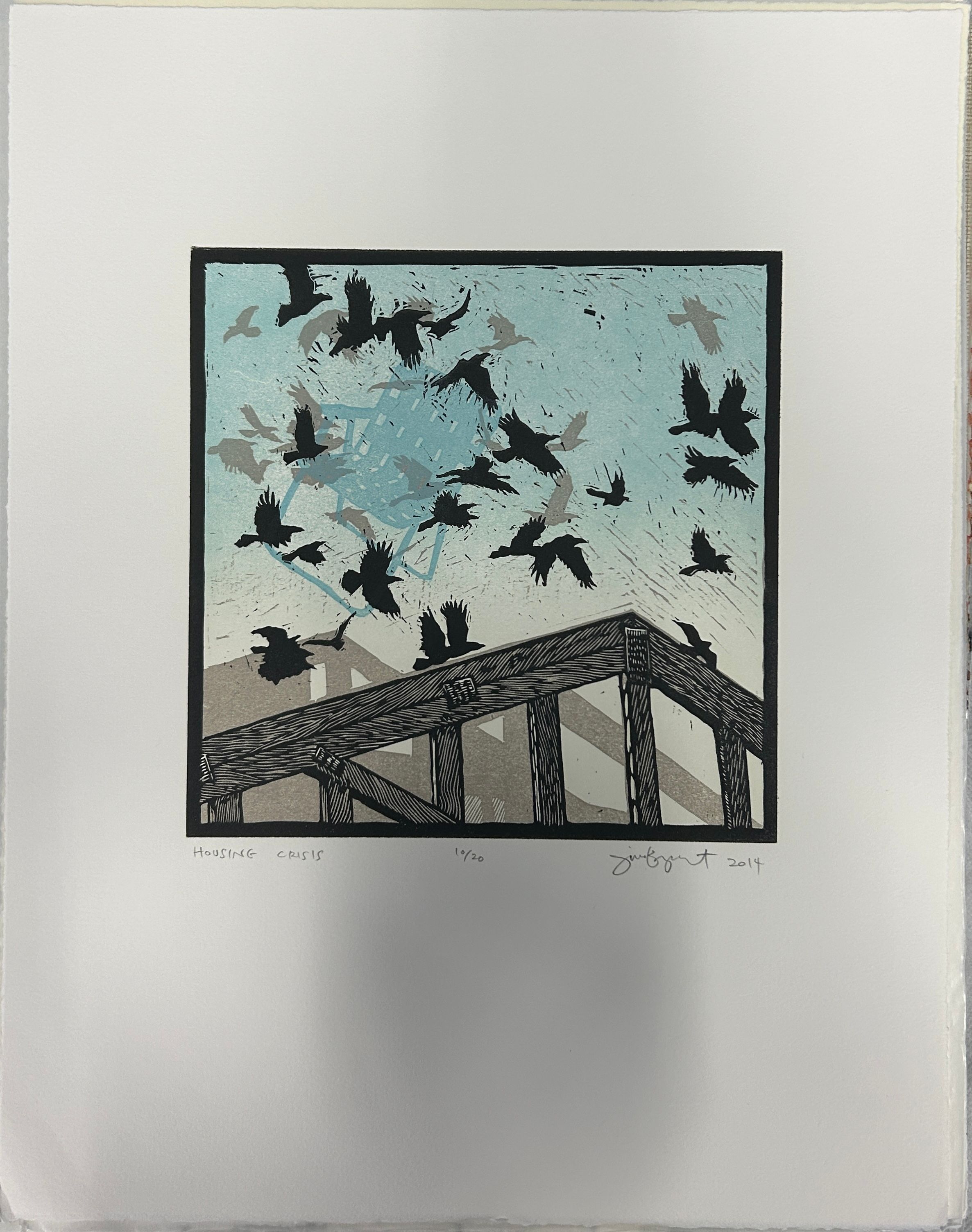 Large print of birds flying over an unfinished houseCollection
