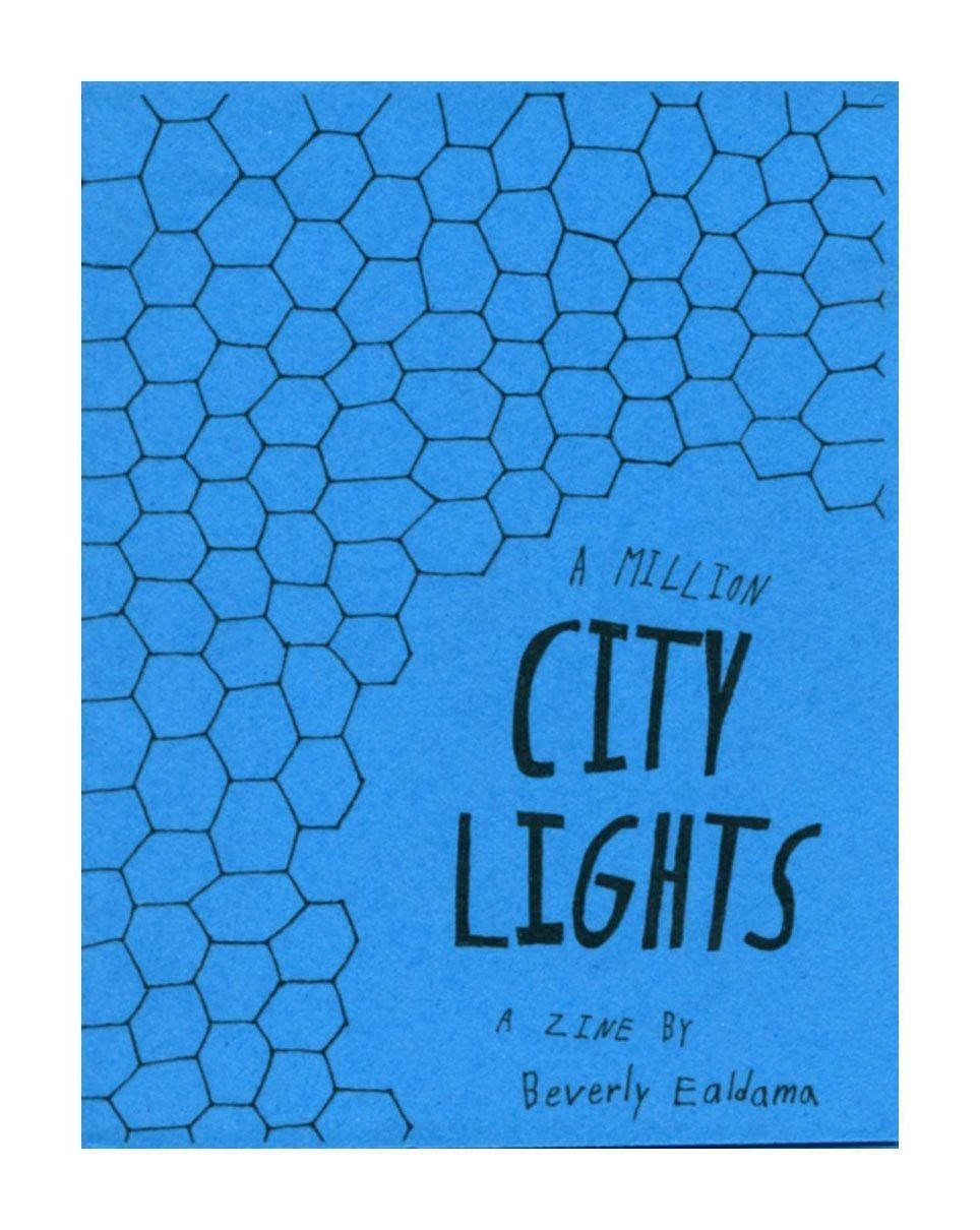 Small blue paper booklet with a mismatched honeycomb pattern on the majority of the page, surrounding the title on the right side.Collection