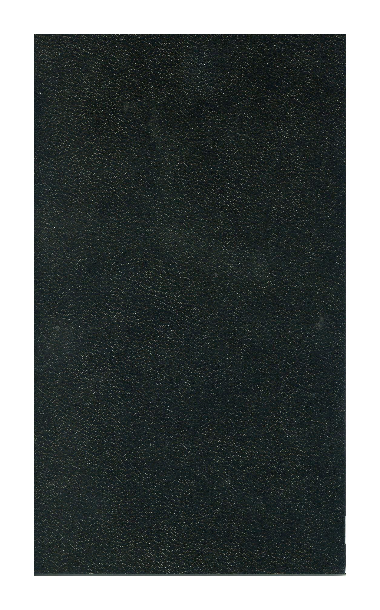 Small all black leather booklet with no text or imaging on the cover. Threaded along the spine with black thread.Collection