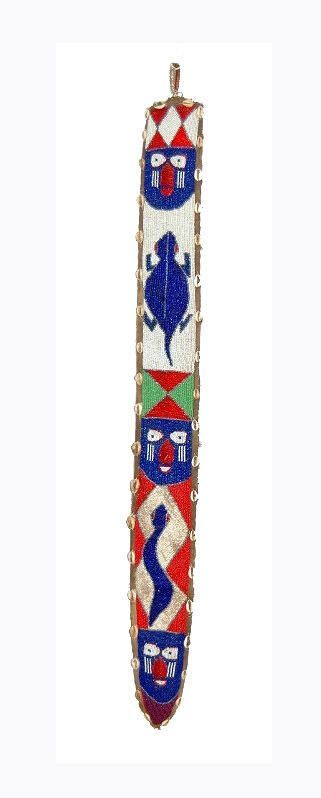Beaded sash with human faces and reptile decorations, bordered by cowrie shellsCollection