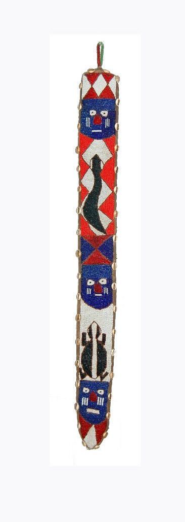 Beaded sash with human face and animal decorations, with border of cowrie shellsCollection