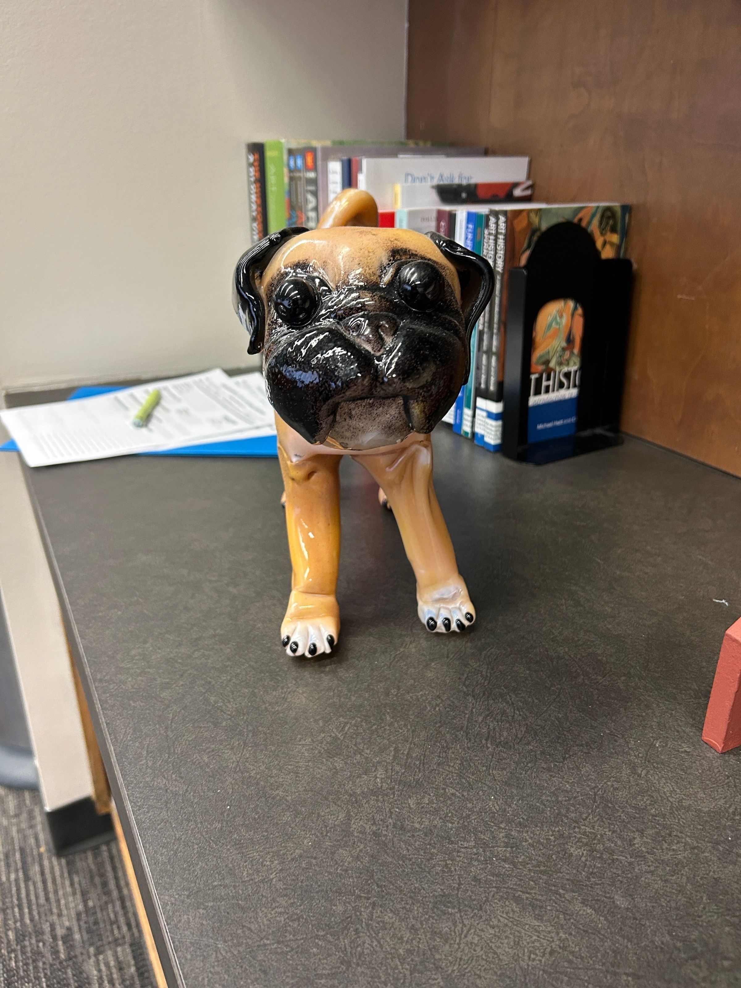 Life-size glass dog (pug) figure.Collection