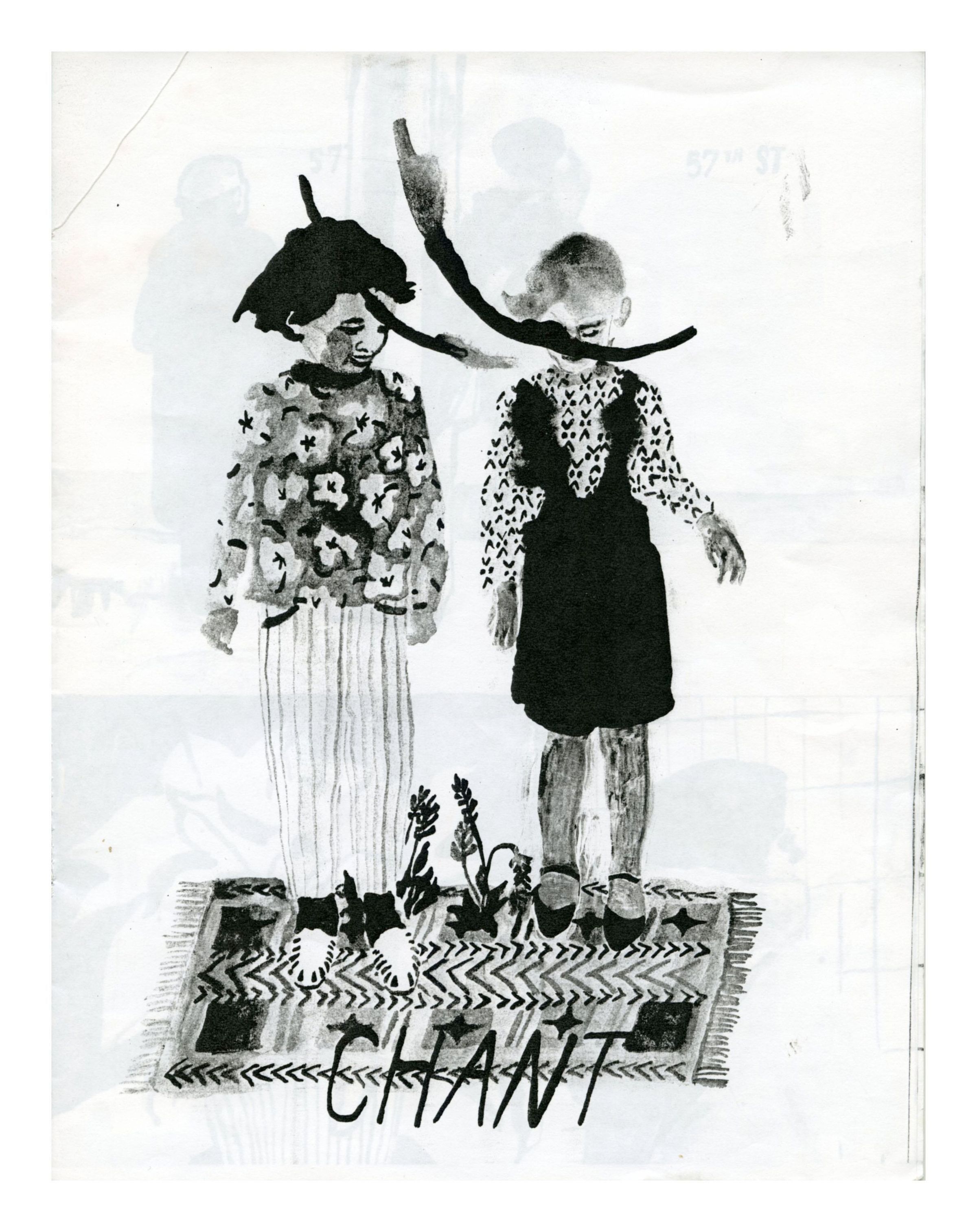 The cover page shows two children standing together on a rug. The children's faces are smudged with ink.