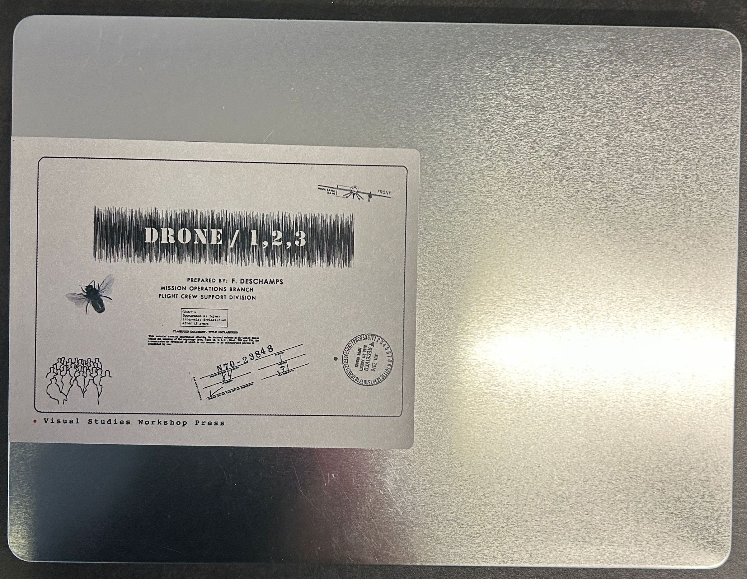 An aluminum box with a label including information on the series and visuals. The box includes a remote constructed from plastic and three books printed with imagery and text.Collection
