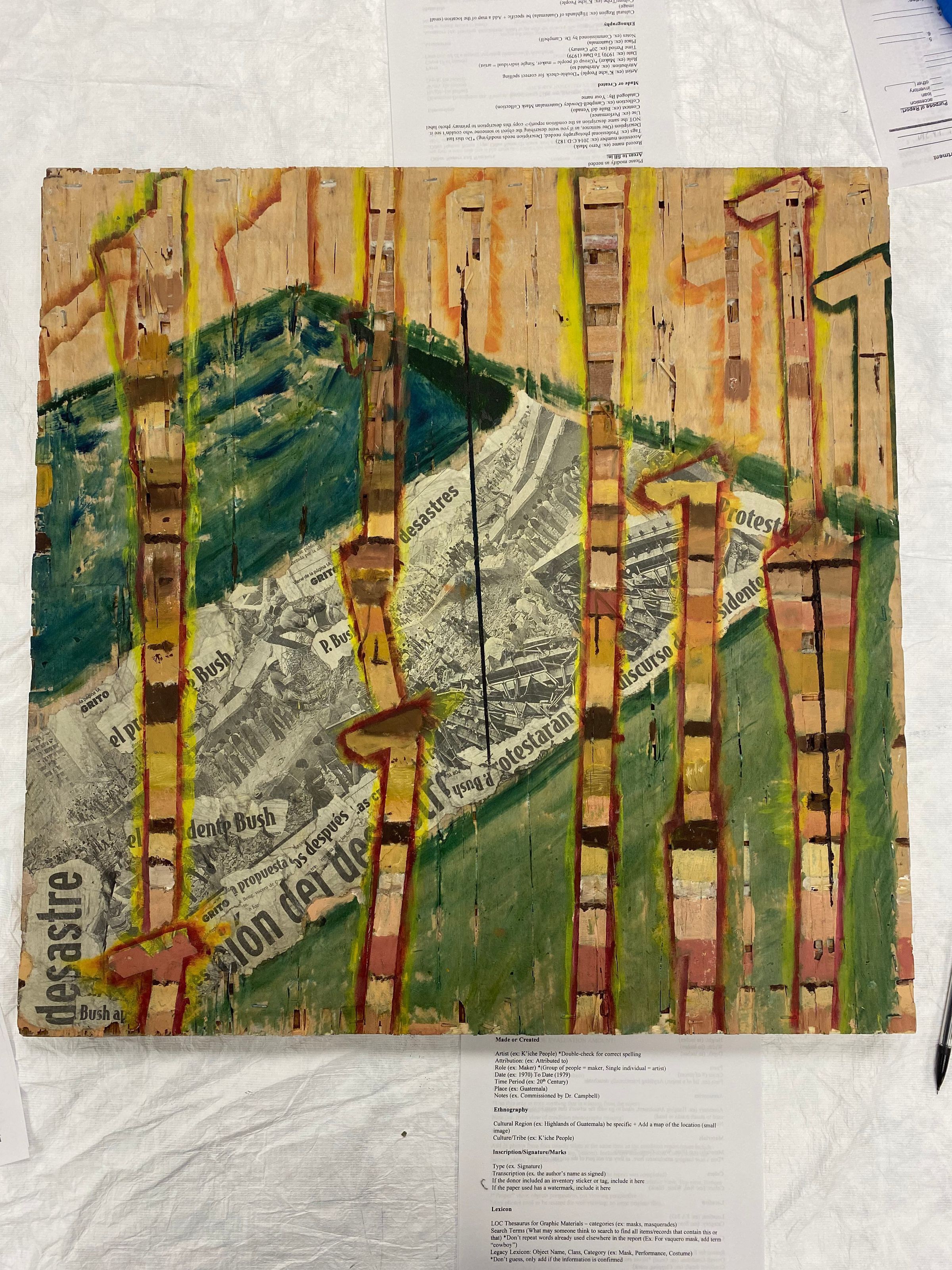 Mixed media on wood stapled to a wood frame.Collection