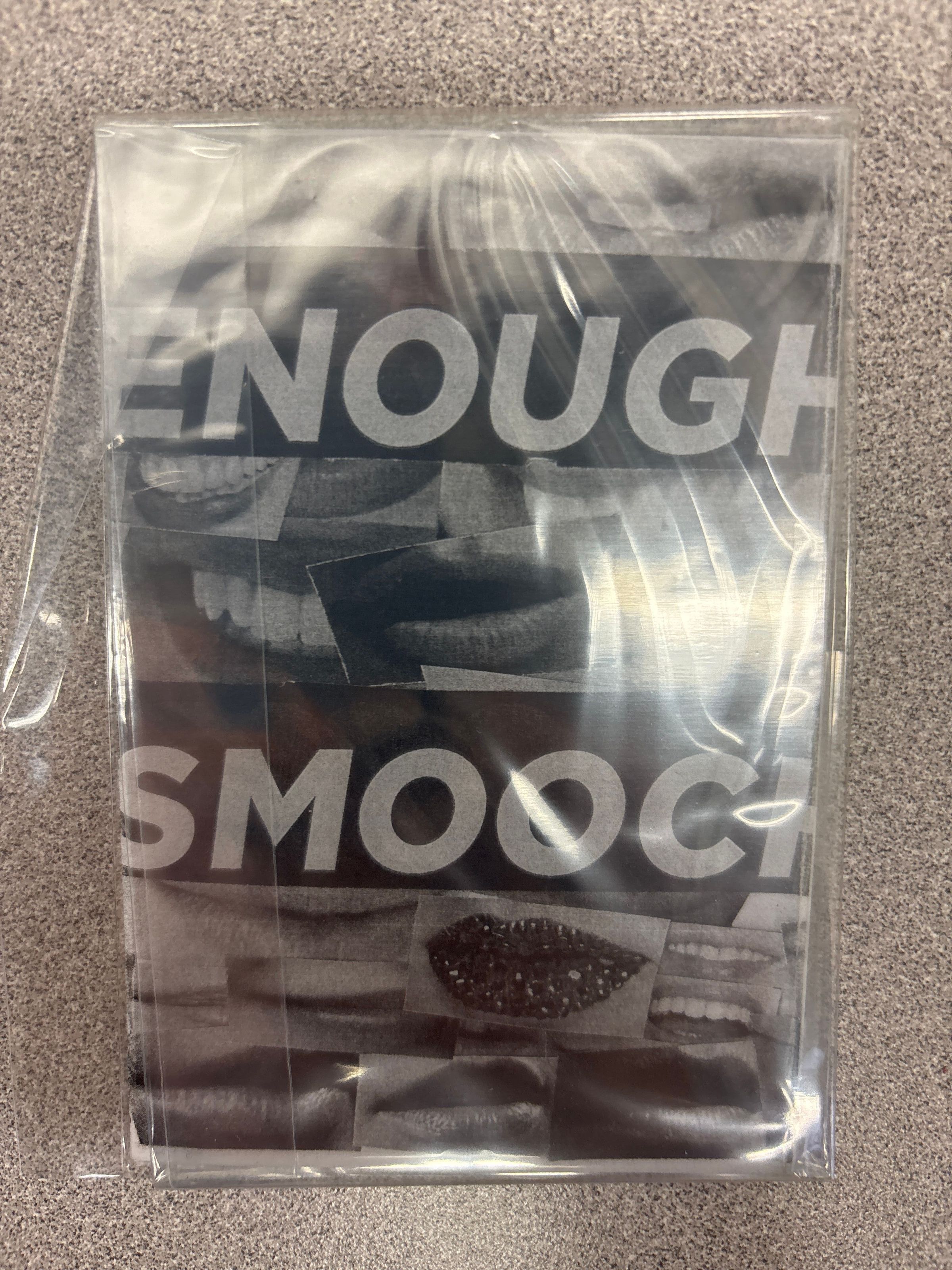The book is in black and white with a collage of photocopied libs and black bars with white lettering over them (the title) on the cover.Collection