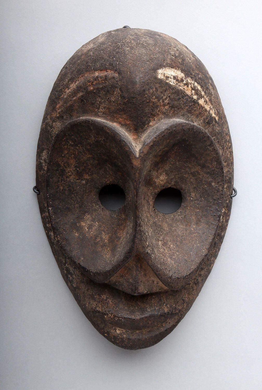 Medium wood face mask with large disc-like eyes and white pigment on eyebrows.Collection