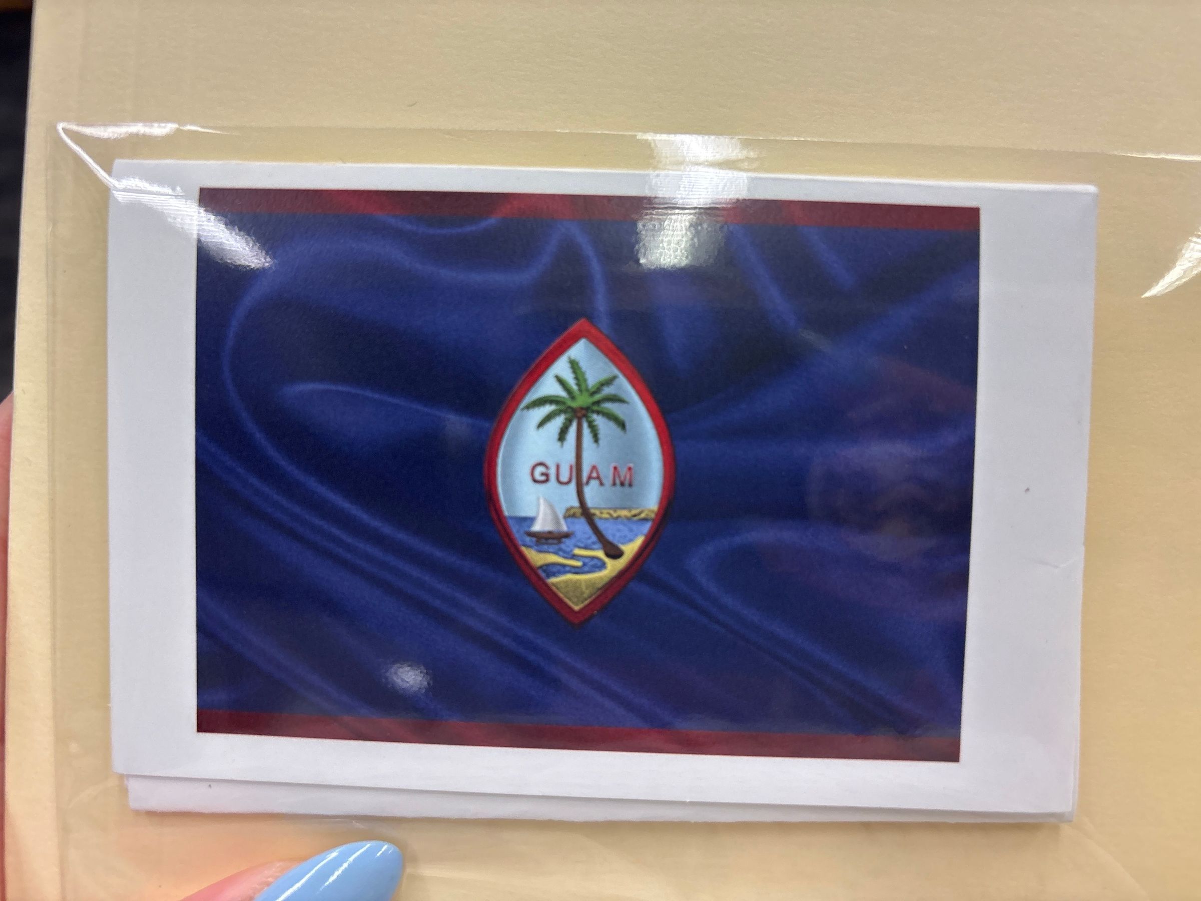 This booklet is small and folded. The interior pages have various photos from different areas in Guam.